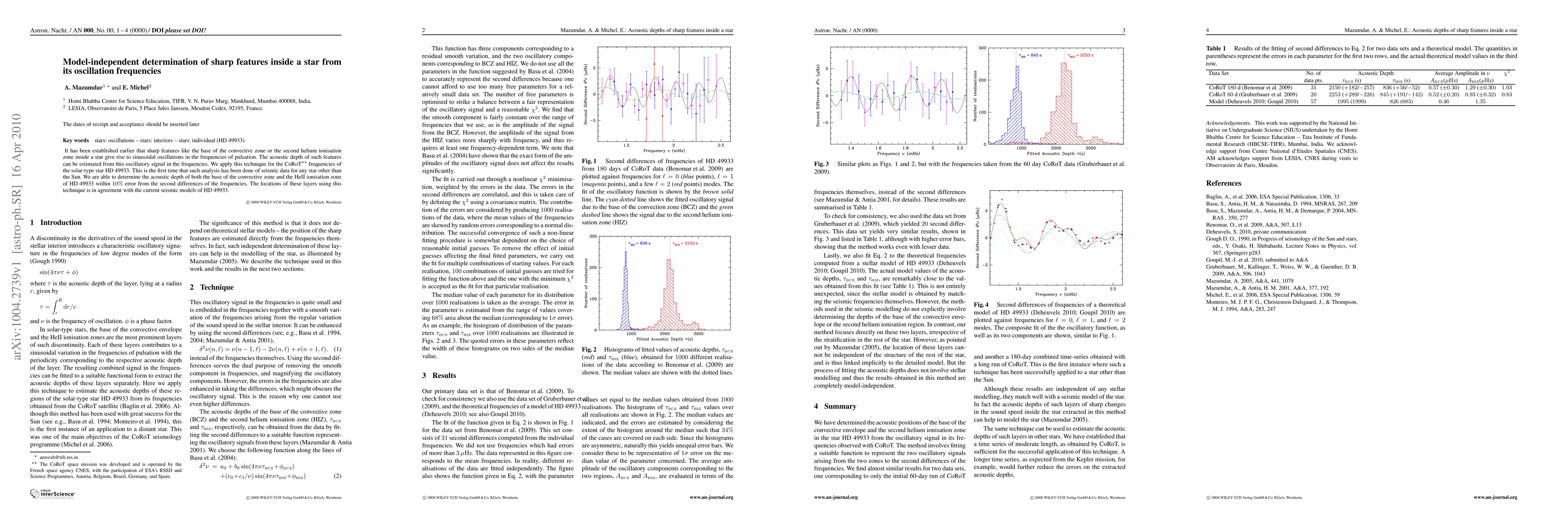 This paper presents a model-independent method to determine sharp internal features in stars using their oscillation frequencies, applying it to HD49933 and achieving accurate estimates of the convective zone and HeII ionisation zone depths, validating the technique with seismic models.