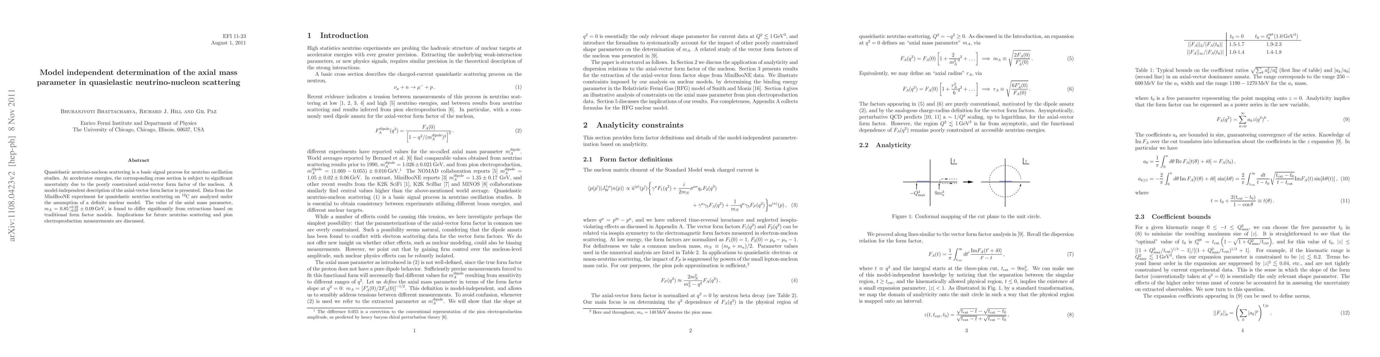 The paper introduces a model-independent description of the axial-vector form factor, presenting a method to extract the axial mass parameter (m_A) from experimental data without relying on specific form factor models.