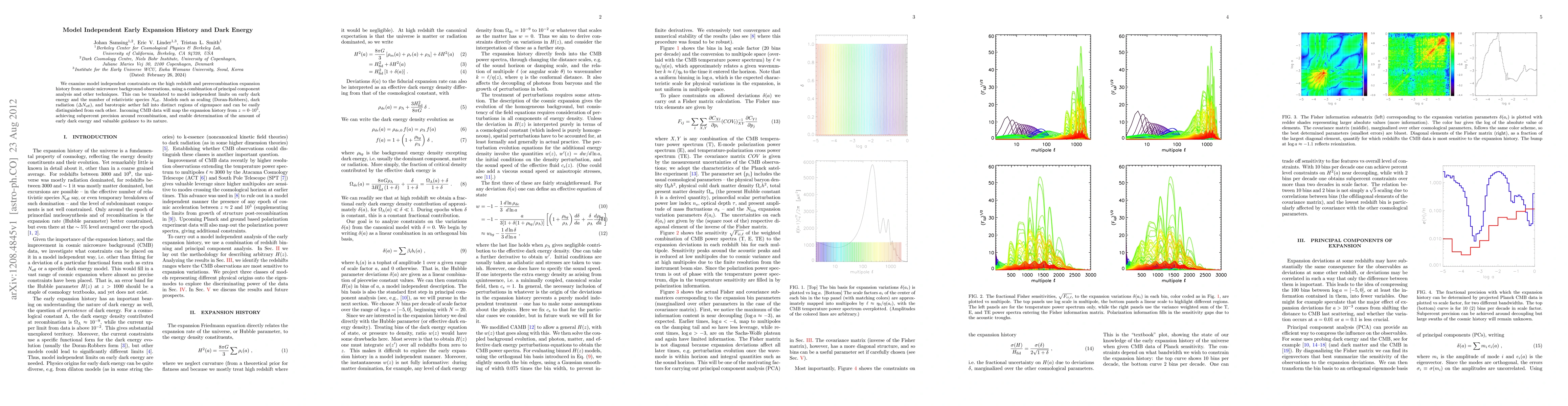 We examine model independent constraints on the high redshift and prerecombination expansion history from cosmic microwave background observations, using a combination of principal component analysis and other techniques. This can be translated to model independent limits on early dark energy and the number of relativistic species $N_{\rm eff}$. Models such as scaling (Doran-Robbers), dark radiation ($\Delta N_{\rm eff}$), and barotropic aether fall into distinct regions of eigenspace and can be easily distinguished from each other. Incoming CMB data will map the expansion history from $z=0$--$10^5$, achieving subpercent precision around recombination, and enable determination of the amount of early dark energy and valuable guidance to its nature.