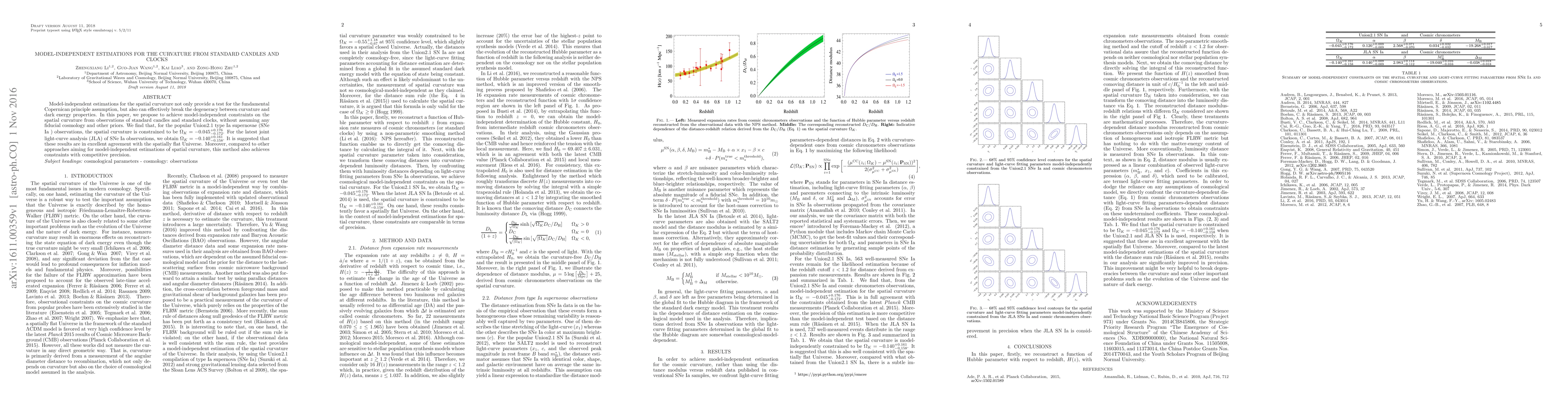 This paper proposes a method for model-independent estimations of spatial curvature using standard candles and clocks, achieving constraints without cosmological assumptions. The results suggest a spatial curvature close to zero, consistent with a flat universe, and demonstrate competitive precision compared to other methods.