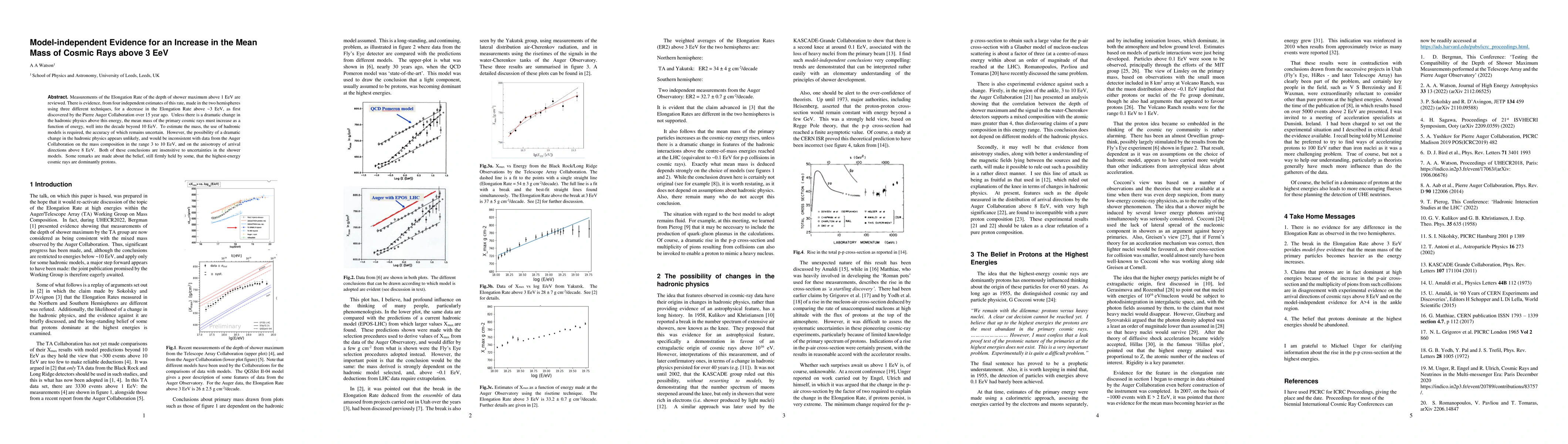 This paper provides model-independent evidence for an increase in the mean mass of cosmic rays above 3 EeV, based on four independent estimates of the elongation rate. The findings suggest a shift in cosmic ray composition with energy, challenging the belief that the highest-energy cosmic rays are predominantly protons.