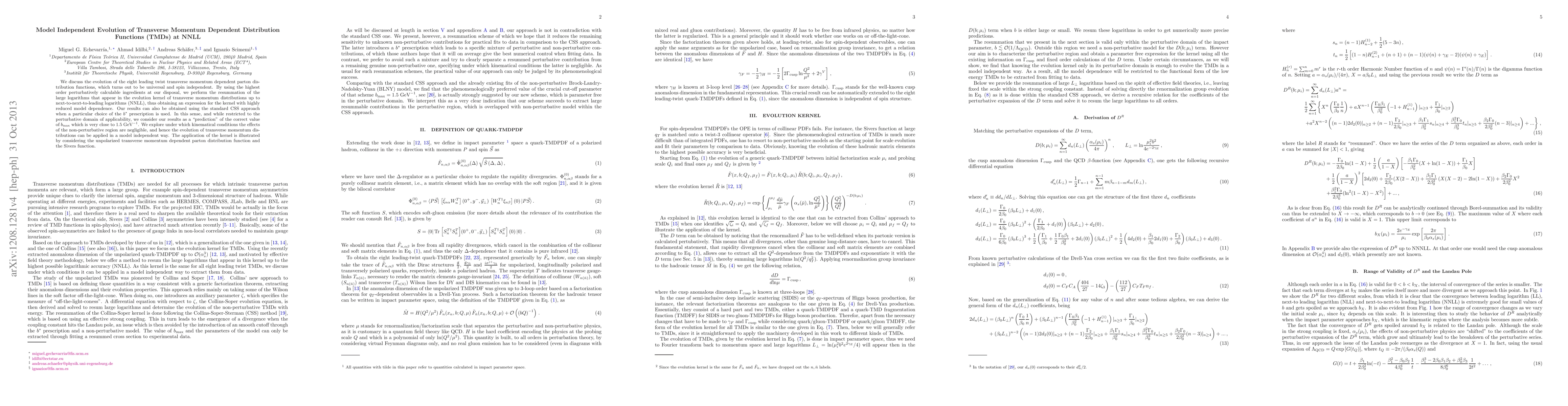This paper explores the model-independent evolution of eight leading twist transverse momentum dependent parton distribution functions (TMDs) at next-to-next-to-leading logarithms (NNLL) accuracy, achieving reduced model dependence through resummation of large logarithms. The results suggest a "prediction" for the value of $b_{\rm max}$ close to $1.5 {\rm GeV}^{-1}$, and identify kinematical conditions where non-perturbative effects are negligible.