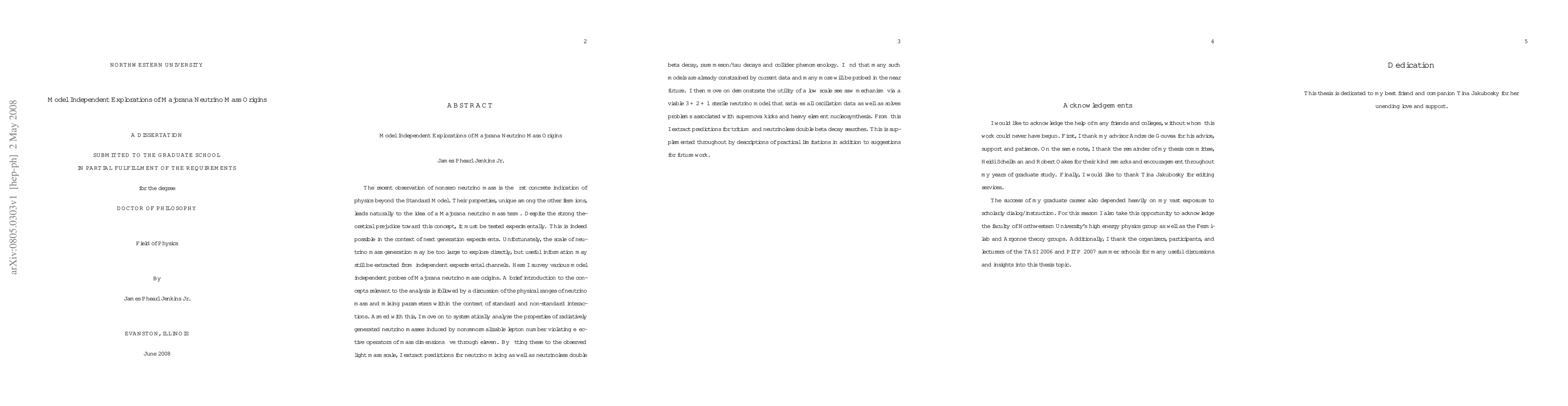 The scale of neutrino mass generation may be too large to explore directly, but useful information may still be extracted from independent experimental channels. Here I survey various model independent probes of Majorana neutrino mass origins. An introduction to the concepts relevant to the analysis is followed by a discussion of the physical ranges of neutrino parameters within the context of standard and non-standard interactions. Armed with this, I move on to systematically analyze the properties of radiatively generated neutrino masses induced by nonrenormalizable lepton number violating effective operators of mass dimensions five through eleven. By fitting these to the observed light mass scale, I extract predictions for neutrino mixing as well as neutrinoless double beta decay, rare meson/tau decays and collider phenomenology. I find that many such models are already constrained by current data and many more will be probed in the near future. I then move on demonstrate the utility of a low scale seesaw mechanism via a viable sterile neutrino model that satisfies all oscillation data as well as solves problems associated with supernova kicks and heavy element nucleosynthesis. From this I extract predictions for tritium and neutrinoless double beta decay searches.