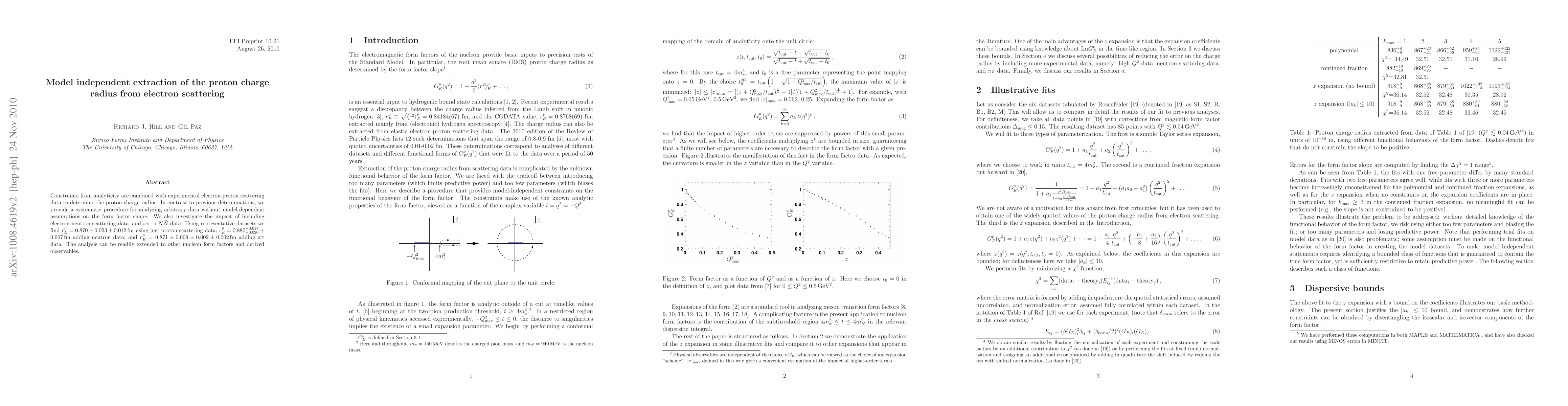 This paper presents a model-independent method to extract the proton charge radius from electron scattering data, avoiding model-dependent assumptions. The results show a proton charge radius of 0.870 fm when using only proton scattering data, with further refinements when including neutron and pion-pion scattering data.