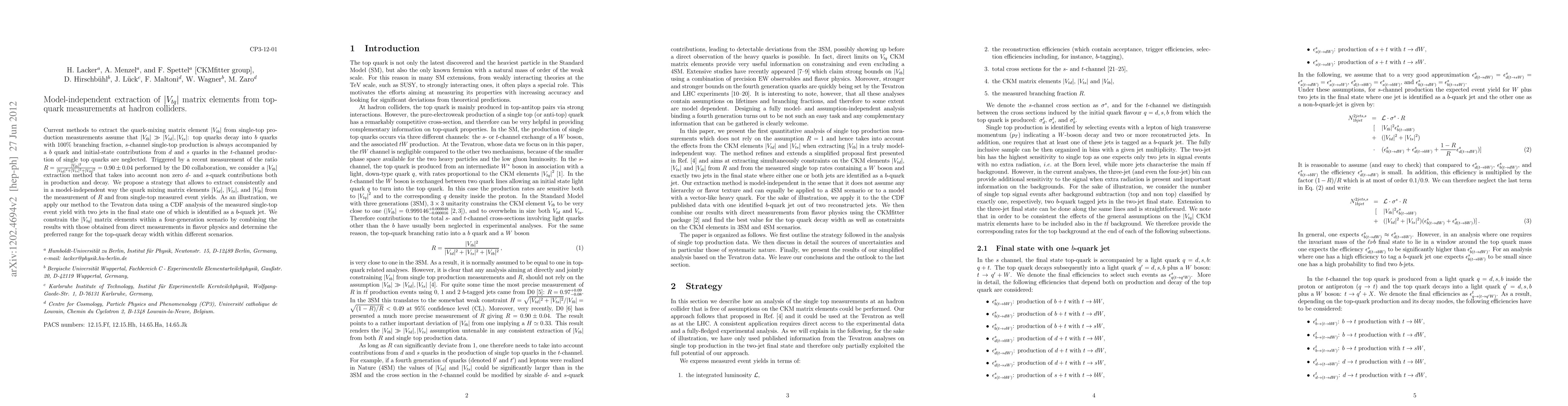 This paper proposes a model-independent method to extract the matrix elements $|V_{td}|$, $|V_{ts}|$, and $|V_{tb}|$ from single-top quark measurements at hadron colliders, considering non-negligible contributions from $d$ and $s$ quarks. The method is demonstrated using Tevatron data and determines the preferred range for the top-quark decay width.