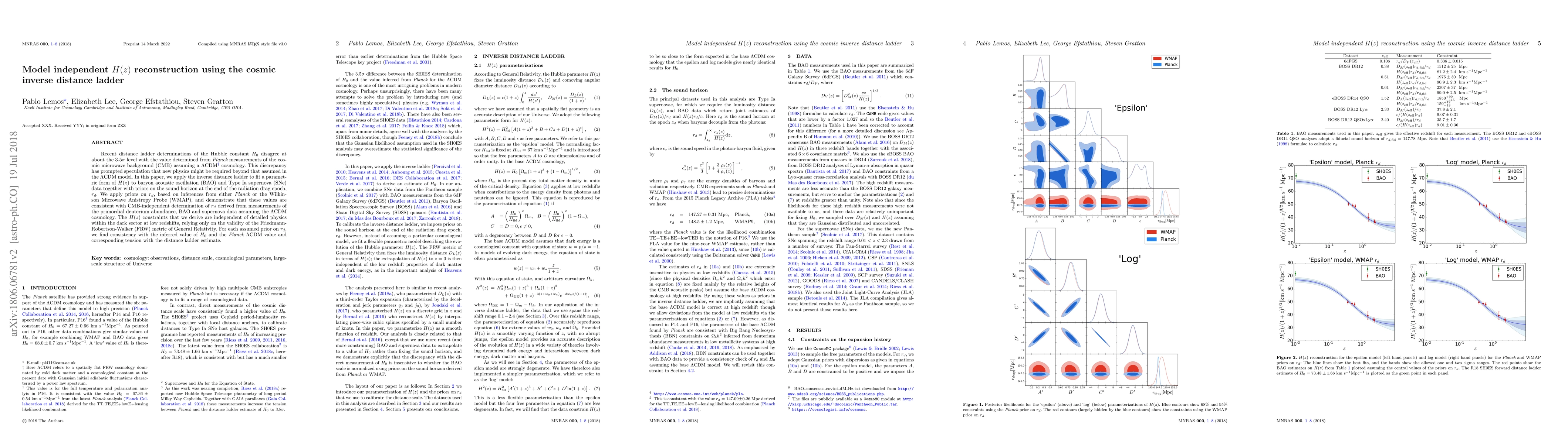 This paper reconstructs the Hubble function $H(z)$ using the inverse distance ladder method, combining BAO and Type Ia supernova data with priors on the sound horizon $r_d$. It finds consistency between these $H(z)$ constraints and the Planck $\Lambda$CDM model, while highlighting a tension with distance ladder estimates of $H_0$.