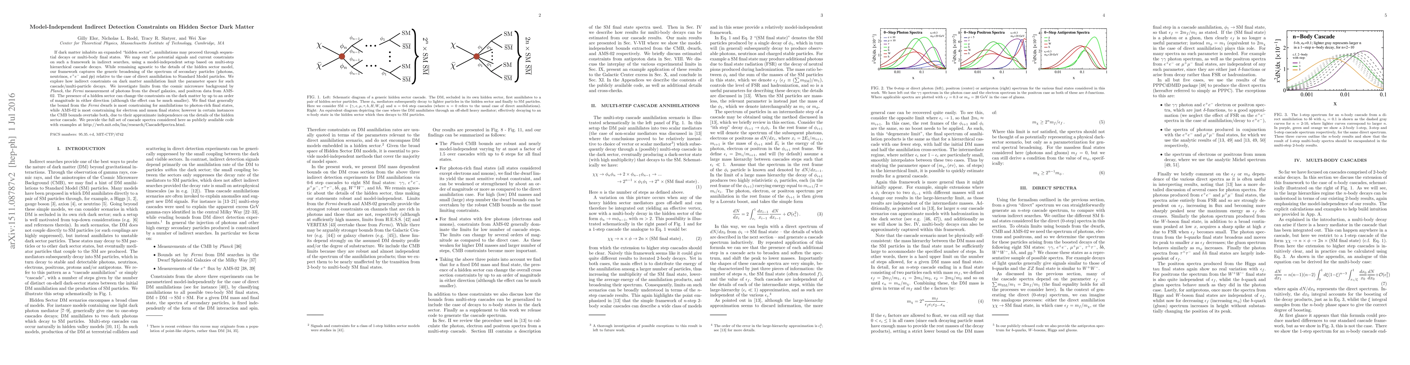 If dark matter inhabits an expanded "hidden sector", annihilations may proceed through sequential decays or multi-body final states. We map out the potential signals and current constraints on such a framework in indirect searches, using a model-independent setup based on multi-step hierarchical cascade decays. While remaining agnostic to the details of the hidden sector model, our framework captures the generic broadening of the spectrum of secondary particles (photons, neutrinos, e+e- and antiprotons) relative to the case of direct annihilation to Standard Model particles. We explore how indirect constraints on dark matter annihilation limit the parameter space for such cascade/multi-particle decays. We investigate limits from the cosmic microwave background by Planck, the Fermi measurement of photons from the dwarf galaxies, and positron data from AMS-02. The presence of a hidden sector can change the constraints on the dark matter annihilation cross section by up to an order of magnitude in either direction (although the effect can be much smaller). We find that generally the bound from the Fermi dwarfs is most constraining for annihilations to photon-rich final states, while AMS-02 is most constraining for electron and muon final states; however in certain instances the CMB bounds overtake both, due to their approximate independence of the details of the hidden sector cascade. We provide the full set of cascade spectra considered here as publicly available code with examples at http://web.mit.edu/lns/research/CascadeSpectra.html.