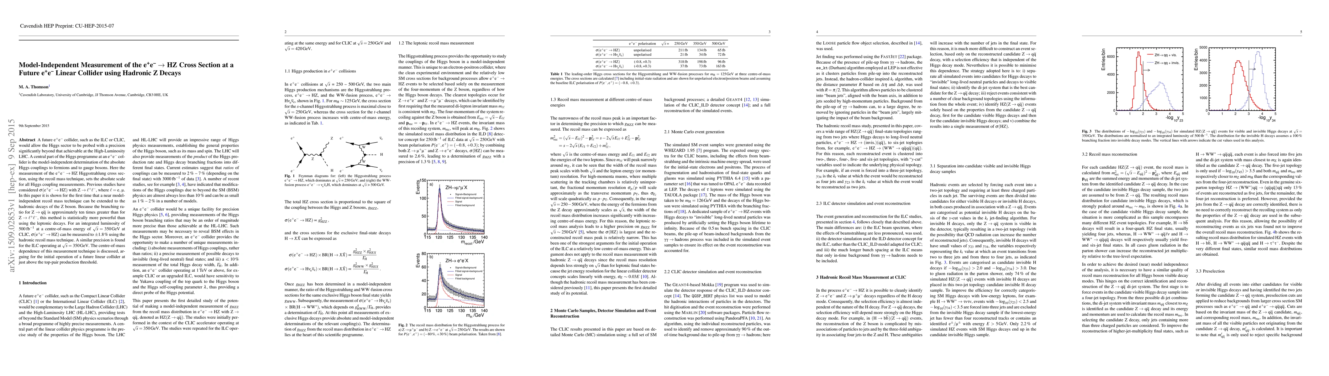 A future e+e- collider, such as the ILC or CLIC, would allow the Higgs sector to be probed with a precision significantly beyond that achievable at the High-Luminosity LHC. A central part of the Higgs programme at an e+e- collider is the model-independent determination of the absolute Higgs couplings to fermions and to gauge bosons. Here the measurement of the e+e-->HZ Higgsstrahlung cross section, using the recoil mass technique, sets the absolute scale for all Higgs coupling measurements. Previous studies have considered e+e- ->ZH with Z->l+l-, where l = electron or muon. In this paper it is shown for the first time that a near model-independent recoil mass technique can be extended to the hadronic decays of the Z boson. Because the branching ratio for Z->qq is approximately ten times greater than for Z->l+l-, this method is statistically more powerful than using the leptonic decays. For an integrated luminosity of 500 fb-1 at a centre-of-mass energy of 350 GeV at CLIC, the e+e-->HZ cross section can be measured to 1.8 % using the hadronic recoil mass technique. A similar precision is found for the ILC operating at 350 GeV. The centre-of-mass dependence of this measurement technique is discussed, arguing for the initial operation of a future linear collider at just above the top-pair production threshold.