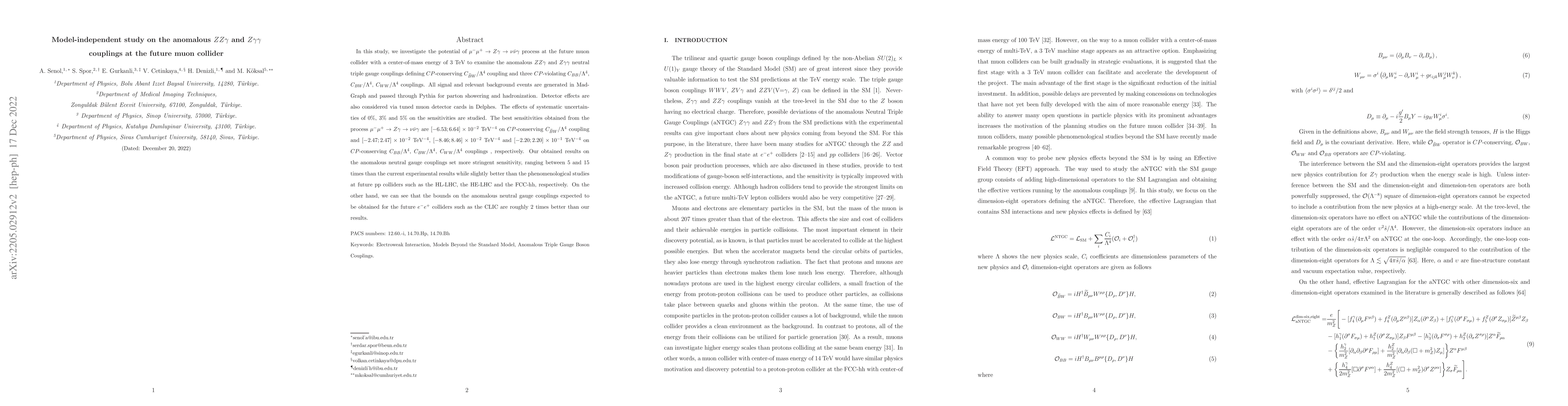 This study explores the potential of a future muon collider at 3 TeV to detect anomalous $ZZ\gamma$ and $Z\gamma\gamma$ couplings via the $\mu^{-} \mu^{+}\to Z\gamma \to \nu\bar{\nu}\gamma$ process, achieving sensitivities up to 15 times better than current experimental results. The results suggest more stringent bounds on these couplings compared to future proton colliders but are slightly less precise than those expected from future electron-positron colliders.