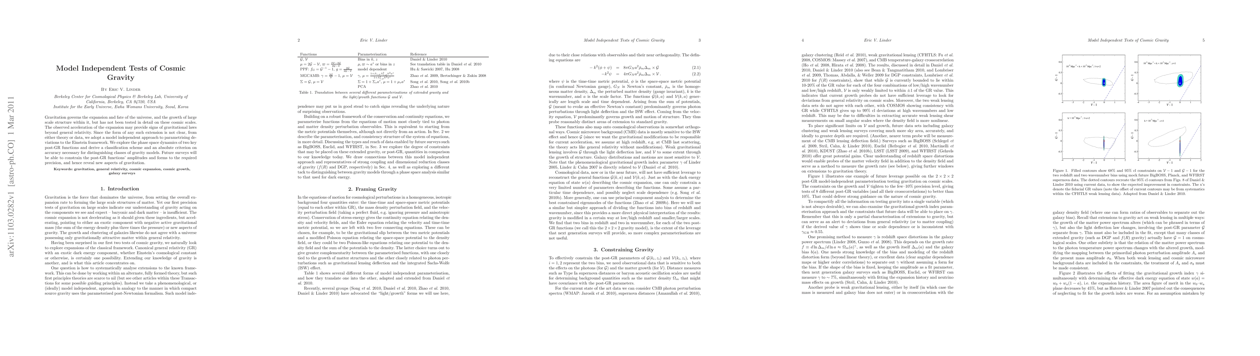 Gravitation governs the expansion and fate of the universe, and the growth of large scale structure within it, but has not been tested in detail on these cosmic scales. The observed acceleration of the expansion may provide signs of gravitational laws beyond general relativity. Since the form of any such extension is not clear, from either theory or data, we adopt a model independent approach to parametrising deviations to the Einstein framework. We explore the phase space dynamics of two key post-GR functions and derive a classification scheme and an absolute criterion on accuracy necessary for distinguishing classes of gravity models. Future surveys will be able to constrain the post-GR functions' amplitudes and forms to the required precision, and hence reveal new aspects of gravitation.