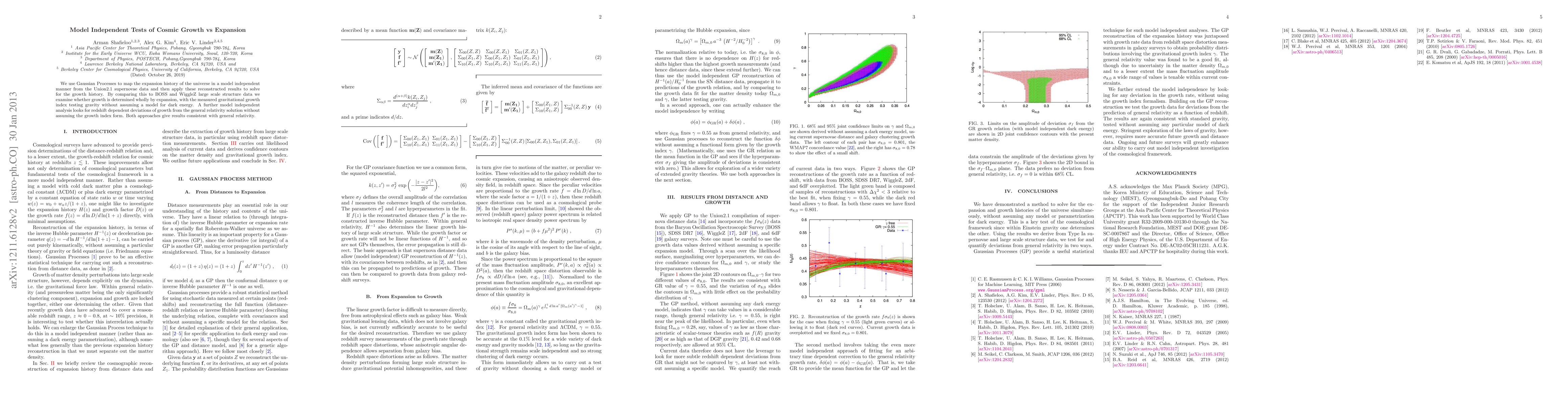 This paper employs Gaussian Processes to reconstruct the universe's expansion history from supernovae data in a model-independent way, then uses this to infer the growth history. The study confirms that the growth rate aligns with predictions from general relativity, without assuming a specific dark energy model.