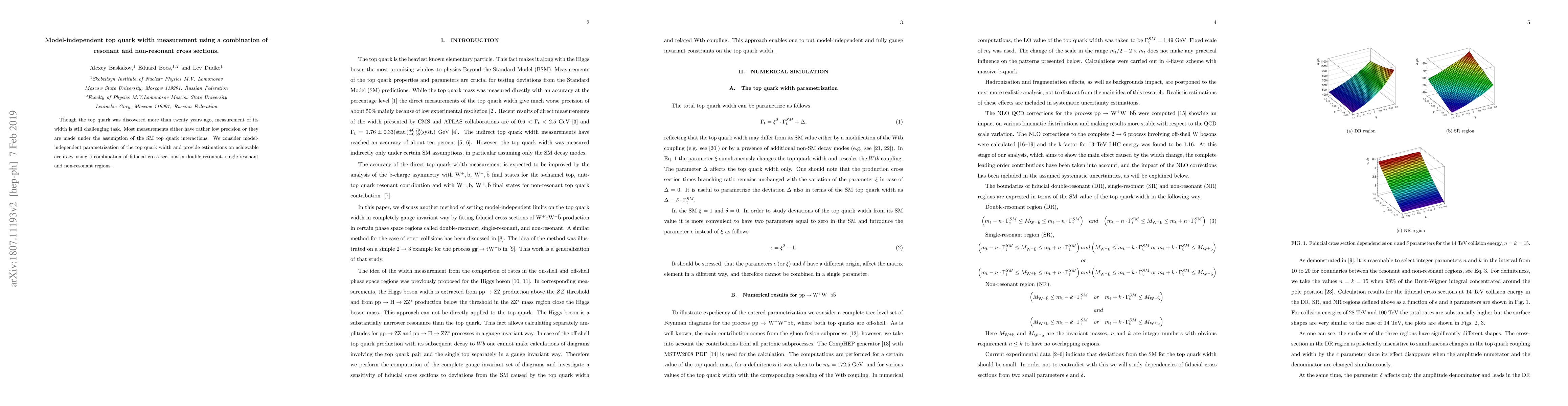 Though top quark was discovered more than twenty years ago, measurement of its width is still challenging task. Most measurements either have rather low precision or they are done in assumption of the SM top quark interactions. We consider model independent parametrization of the top quark width and provide estimations on achievable accuracy using a combination of fiducial cross sections in double, single and non-resonant regions.