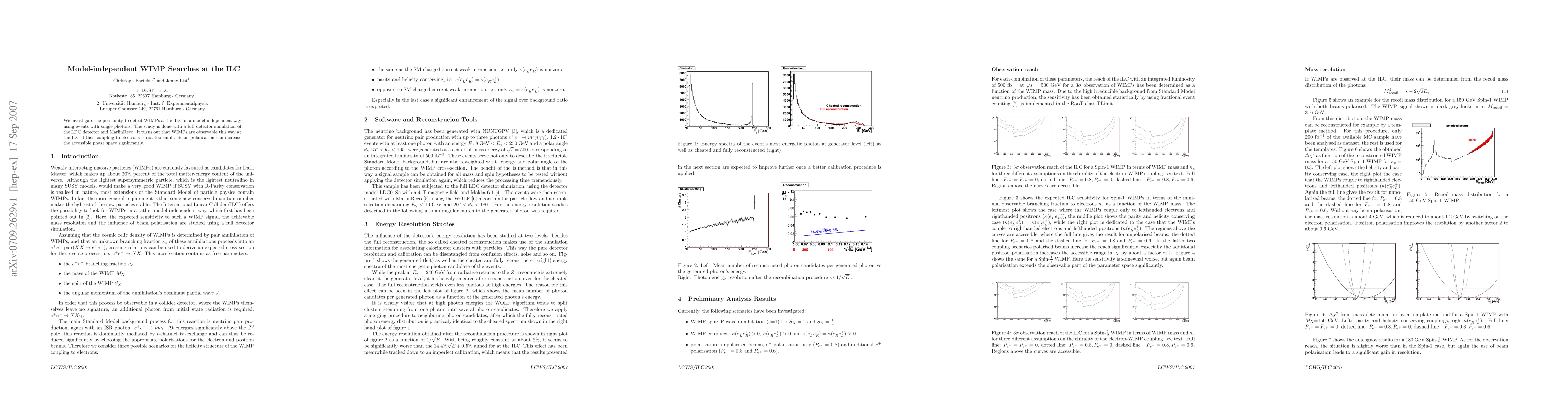 This paper explores model-independent WIMP detection at the ILC using single photon events, revealing that WIMPs can be observed if their coupling to electrons is not negligible, with beam polarization enhancing the detectable phase space.