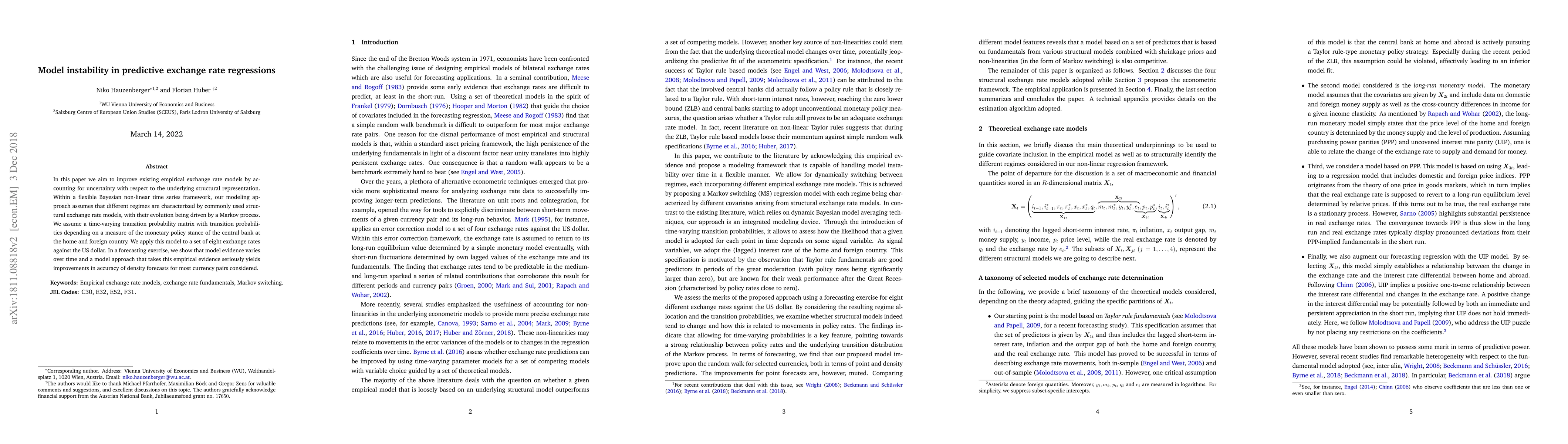 In this paper we aim to improve existing empirical exchange rate models by accounting for uncertainty with respect to the underlying structural representation. Within a flexible Bayesian non-linear time series framework, our modeling approach assumes that different regimes are characterized by commonly used structural exchange rate models, with their evolution being driven by a Markov process. We assume a time-varying transition probability matrix with transition probabilities depending on a measure of the monetary policy stance of the central bank at the home and foreign country. We apply this model to a set of eight exchange rates against the US dollar. In a forecasting exercise, we show that model evidence varies over time and a model approach that takes this empirical evidence seriously yields improvements in accuracy of density forecasts for most currency pairs considered.