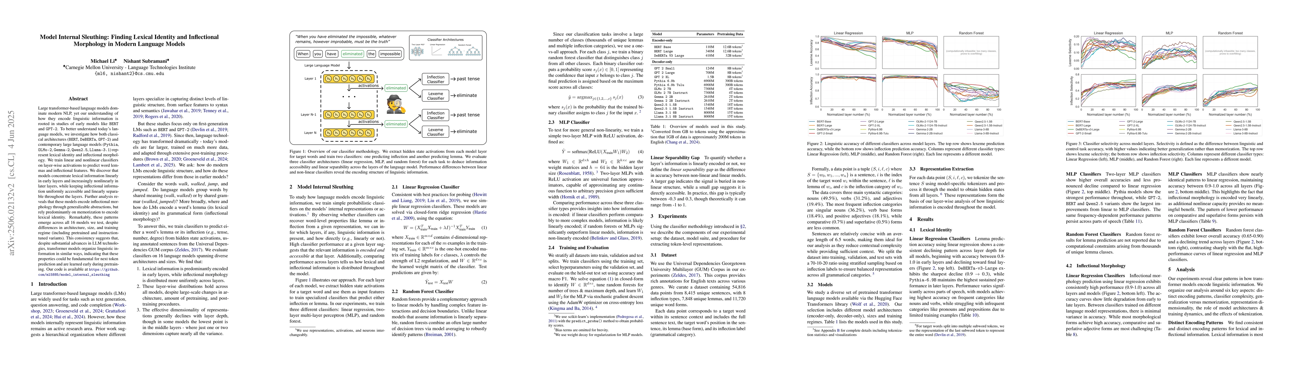 The research investigates how classical and contemporary transformer-based language models represent lexical identity and inflectional morphology. Linear and nonlinear classifiers are trained on layer-wise activations to predict word lemmas and inflectional features across 16 models with varying architectures, sizes, and training regimes.