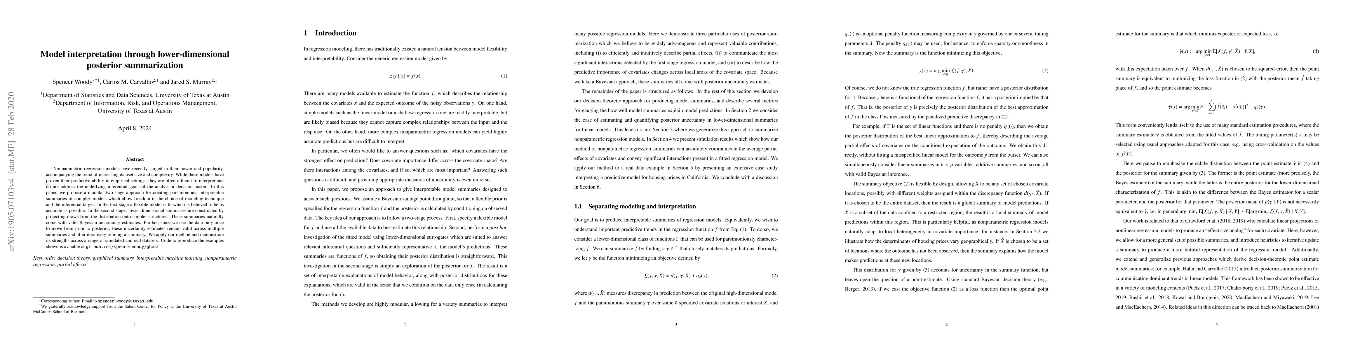 This research uses Bayesian methods to develop interpretable summaries of complex models.