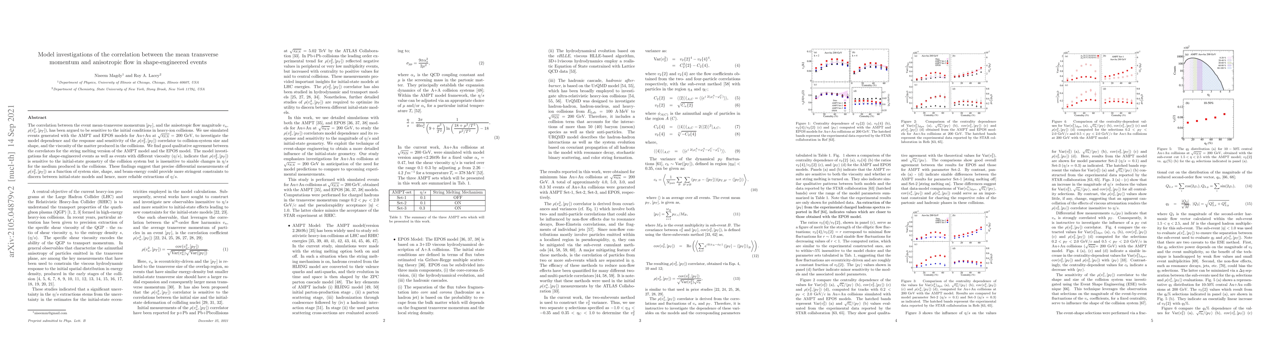 The correlation between the event mean-transverse momentum $[p_{\mathrm{T}}]$, and the anisotropic flow magnitude $v_n$, $\rho(v^{2}_{n},[p_{T}])$, has been argued to be sensitive to the initial conditions in heavy-ion collisions. We use simulated events generated with the AMPT and EPOS models for Au+Au at $\sqrt{\textit{s}_{NN}}$ = 200 GeV, to investigate the model dependence and the response and sensitivity of the $\rho(v^{2}_{2},[p_{T}])$ correlator to collision-system size and shape, and the viscosity of the matter produced in the collisions. We find good qualitative agreement between the correlators for the string melting version of the AMPT model and the EPOS model. The model investigations for shape-engineered events as well as events with different viscosity ($\eta/s$), indicate that $\rho(v^{2}_{2},[p_{T}])$ is sensitive to the initial-state geometry of the collision system but is insensitive to sizable changes in $\eta/s$ for the medium produced in the collisions. These findings suggest that precise differential measurements of $\rho(v^{2}_{2},[p_{T}])$ as a function of system size, shape, and beam-energy could provide more stringent constraints to discern between initial-state models and hence, more reliable extractions of $\eta/s$.