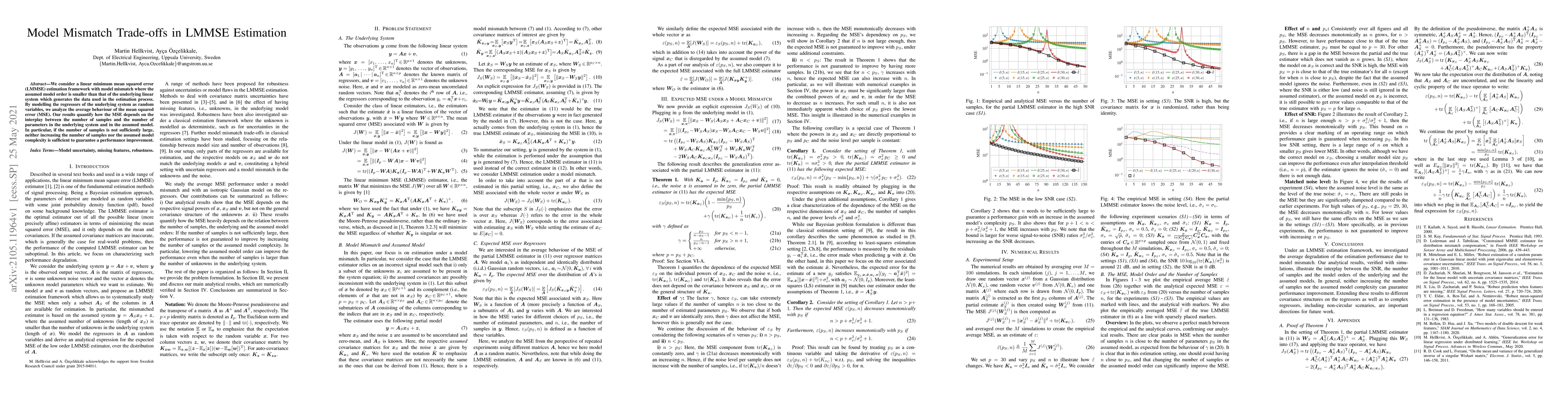 We consider a linear minimum mean squared error (LMMSE) estimation framework with model mismatch where the assumed model order is smaller than that of the underlying linear system which generates the data used in the estimation process. By modelling the regressors of the underlying system as random variables, we analyze the average behaviour of the mean squared error (MSE). Our results quantify how the MSE depends on the interplay between the number of samples and the number of parameters in the underlying system and in the assumed model. In particular, if the number of samples is not sufficiently large, neither increasing the number of samples nor the assumed model complexity is sufficient to guarantee a performance improvement.