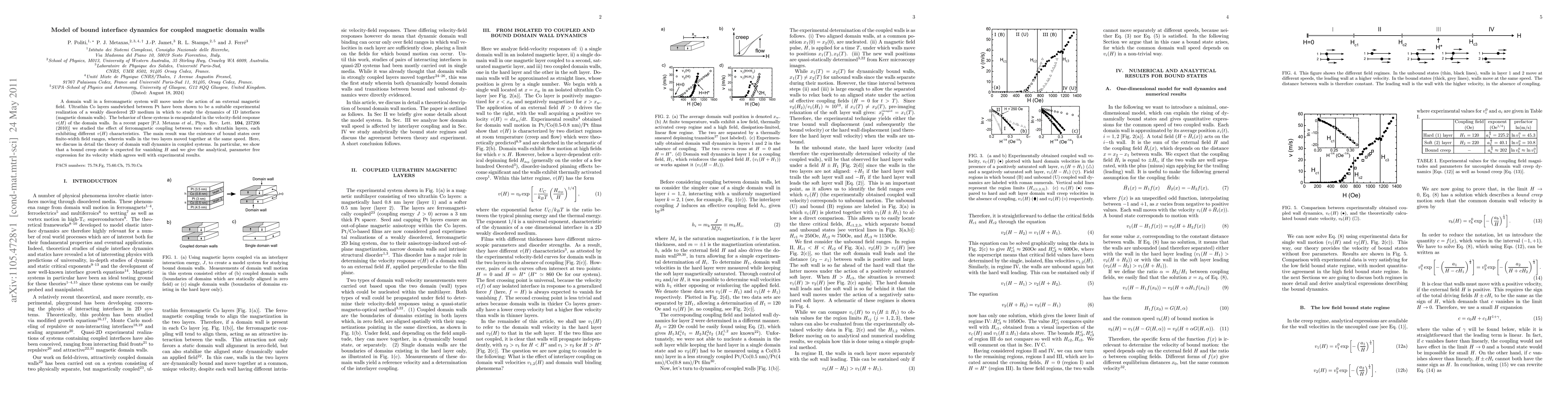 This paper develops a theoretical model for the dynamics of coupled magnetic domain walls in ultrathin Co layers sandwiched between Pt, showing that coupled walls can form bound states moving together at the same velocity. It provides an analytical expression for the velocity of the bound creep state at zero magnetic field, which aligns well with experimental observations.