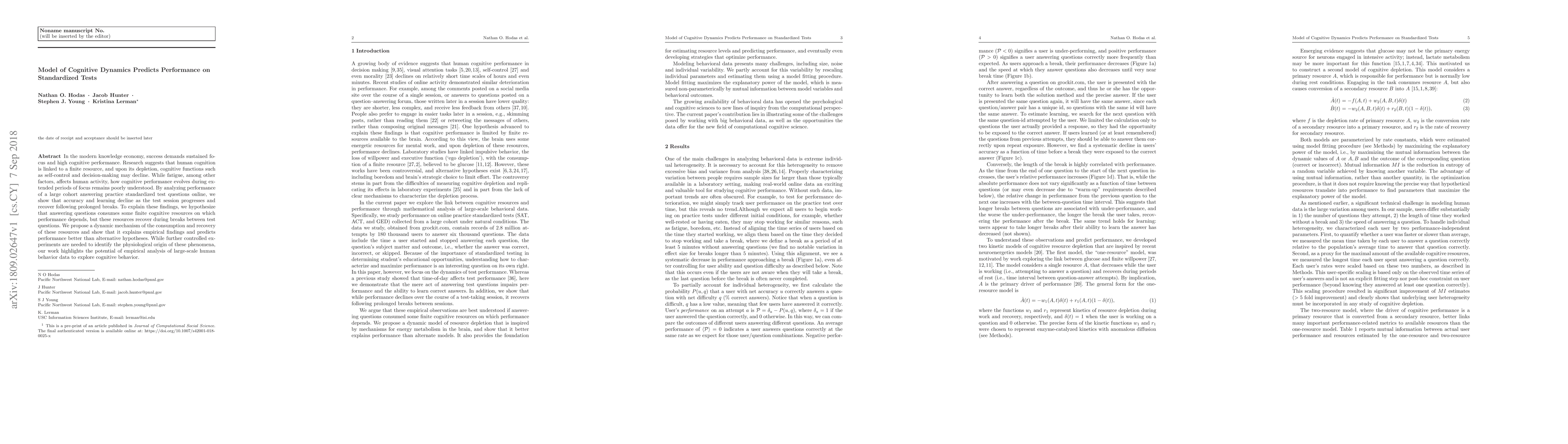 This paper proposes a model of cognitive dynamics that explains the decline in performance during extended focus on standardized tests and its recovery after breaks. The model hypothesizes that cognitive resources are finite and recover during breaks, better predicting performance than alternative hypotheses.