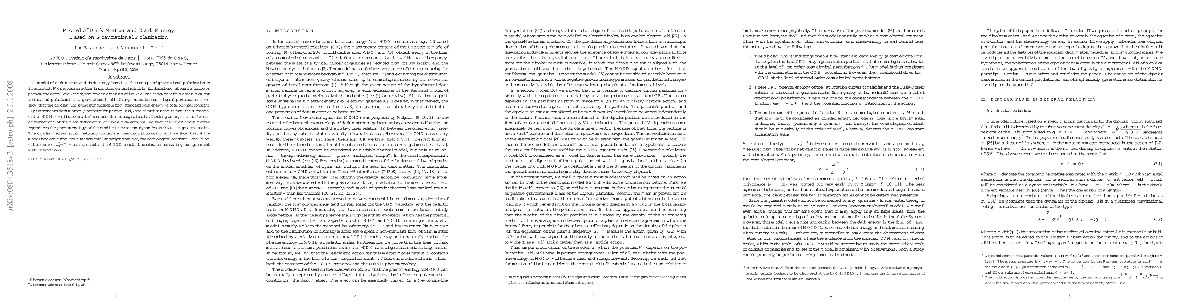 This paper proposes a model of dark matter and dark energy based on gravitational polarization, describing a dipolar medium that mimics the behavior of standard dark energy and dark matter. It suggests that the dipolar medium can reproduce the phenomenology of MOND at galactic scales and aligns the cosmological constant with the MOND constant, consistent with observational data.