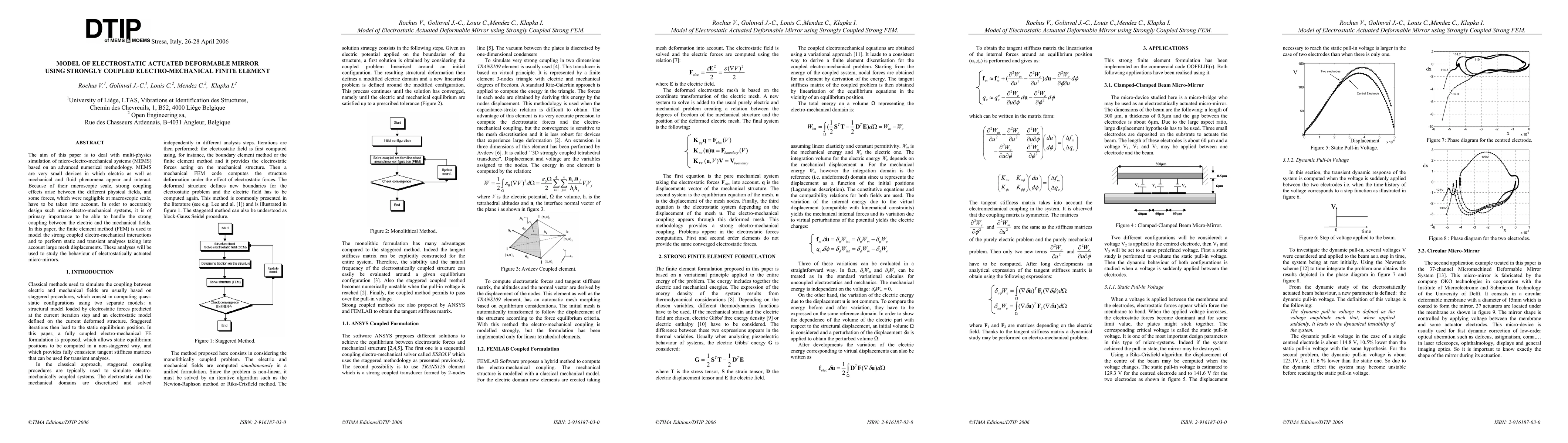 The aim of this paper is to deal with multi-physics simulation of micro-electro-mechanical systems (MEMS) based on an advanced numerical methodology. MEMS are very small devices in which electric as well as mechanical and fluid phenomena appear and interact. Because of their microscopic scale, strong coupling effects arise between the different physical fields, and some forces, which were negligible at macroscopic scale, have to be taken into account. In order to accurately design such micro-electro-mechanical systems, it is of primary importance to be able to handle the strong coupling between the electric and the mechanical fields. In this paper, the finite element method (FEM) is used to model the strong coupled electro-mechanical interactions and to perform static and transient analyses taking into account large mesh displacements. These analyses will be used to study the behaviour of electrostatically actuated micro-mirrors.