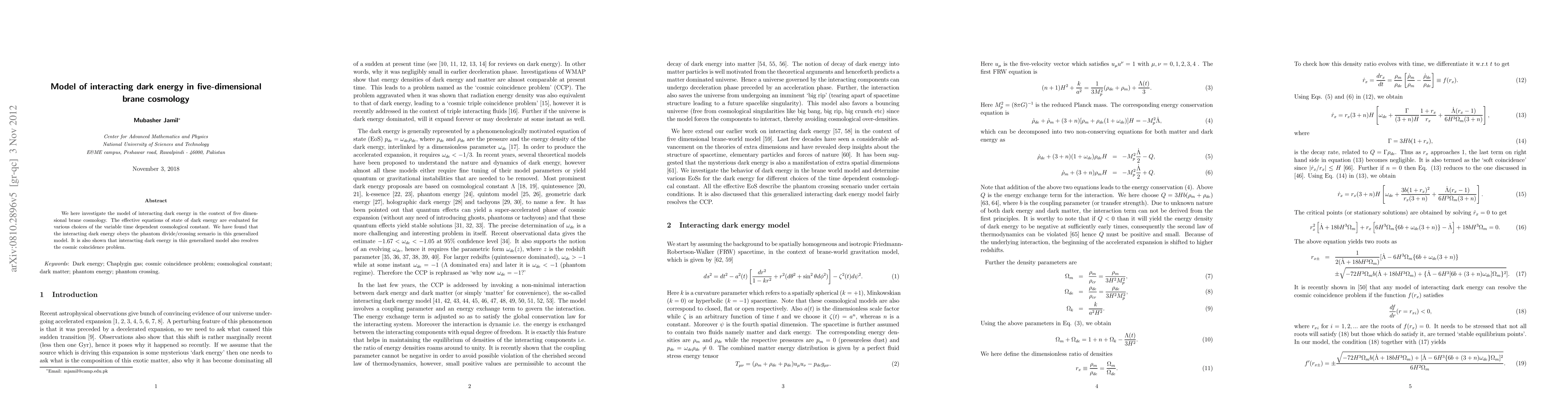 This paper explores an interacting dark energy model within five-dimensional brane cosmology, finding that it adheres to the phantom divide/crossing scenario and resolves the cosmic coincidence problem.