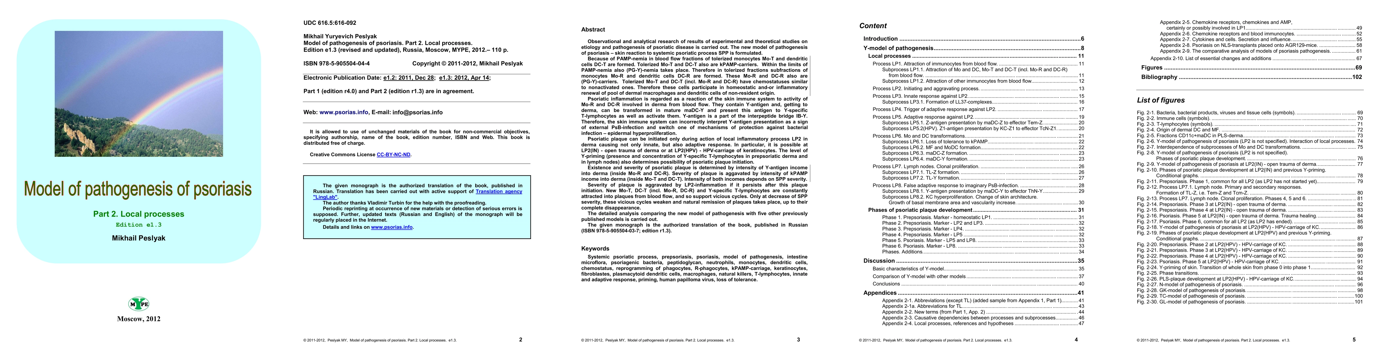 The research proposes a new model of psoriasis pathogenesis, focusing on skin's immune response to systemic psoriatic processes. It highlights that psoriatic inflammation results from skin immune system's misinterpretation of Y-antigen, triggering epidermal hyperproliferation. Plaque initiation and severity are determined by local inflammatory processes and Y-priming level. The model suggests that vicious cycles of immune cells perpetuate plaques, which weaken during reduced systemic psoriatic activity, leading to remission.