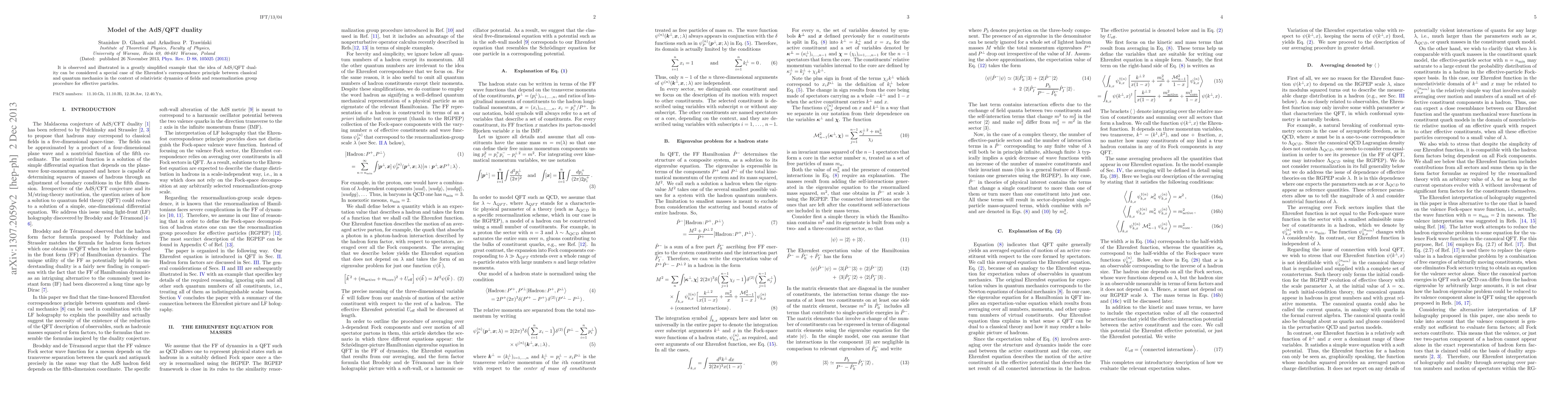 It is observed and illustrated in a greatly simplified example that the idea of AdS/QFT duality can be considered a special case of the Ehrenfest's correspondence principle between classical and quantum mechanics in the context of relativistic dynamics of fields and renormalization group procedure for effective particles.