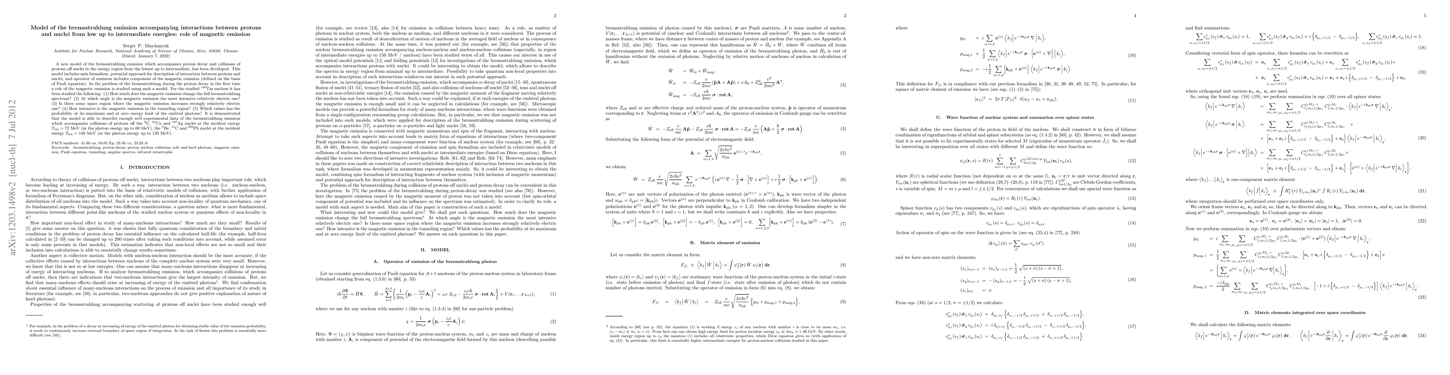 A new model of the bremsstrahlung emission which accompanies proton decay and collisions of protons off nuclei in the energy region from the lowest up to intermediate, has been developed. This model includes spin formalism, potential approach for description of interaction between protons and nuclei, and operator of emission includes component of the magnetic emission (defined on the basis of Pauli equation). In the problem of the bremsstrahlung during the proton decay in the first time a role of the magnetic emission is studied using such a model. For the studied $^{146}{\rm Tm}$ nucleus it has been studied the following: (1) How much does the magnetic emission change the full bremsstrahlung spectrum? (2) At which angle is the magnetic emission the most intensive relatively electric one? (3) Is there some space region where the magnetic emission increases strongly relatively electric one? (4) How intensive is the magnetic emission in the tunneling region? (5) Which values has the probability at its maximum and at zero energy limit of the emitted photons? It is demonstrated that the model is able to describe enough well experimental data of the bremsstrahlung emission which accompanies collisions of protons off the $^{9}{\rm Be}$, $^{12}{\rm C}$ and $^{208}{\rm Pb}$ nuclei at the incident energy $T_{\rm lab}=140$ MeV (at the photon energy up to 120 MeV).
