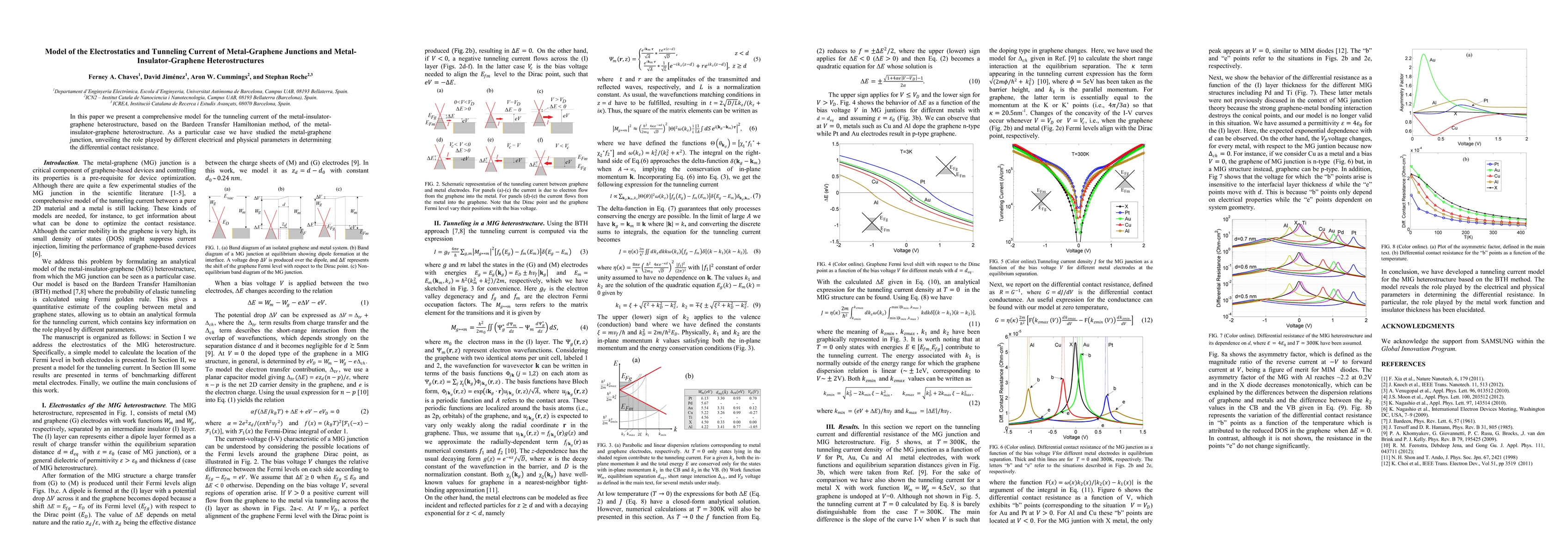 A model is presented for the tunneling current of metal-graphene junctions and metal-insulator-graphene heterostructures, highlighting key parameters influencing differential contact resistance.