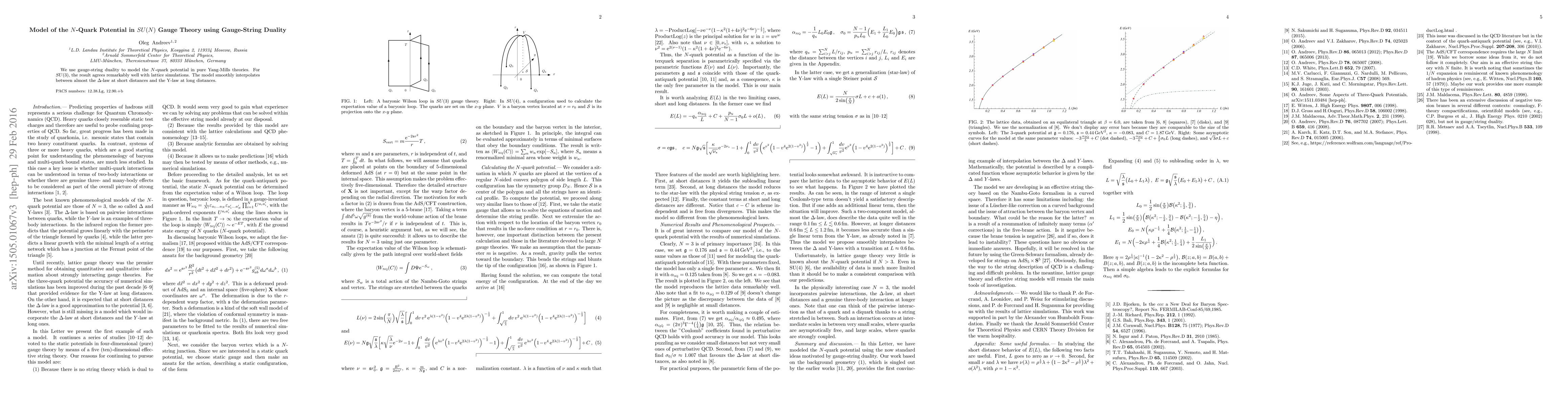 This paper models the N-quark potential in SU(N) gauge theory using gauge-string duality, achieving a good match with lattice simulations for SU(3). The model transitions seamlessly between the $\Delta$-law at short distances and the Y-law at long distances.