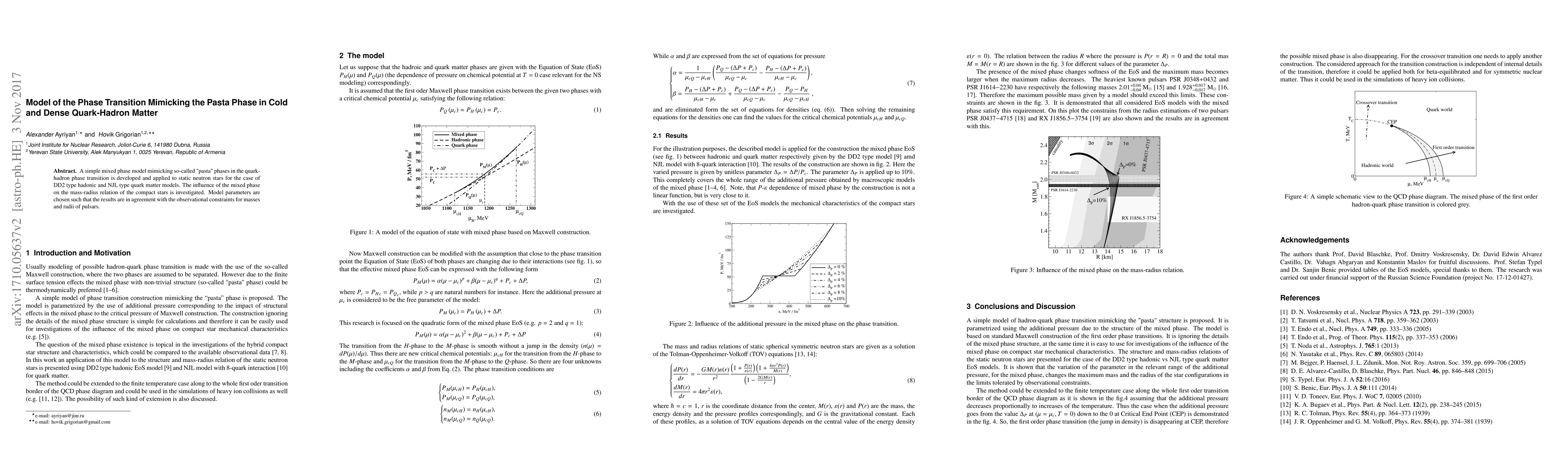 This paper develops a mixed phase model to simulate the "pasta" phases in quark-hadron matter and applies it to neutron stars using DD2 and NJL models. It examines how this phase transition affects the mass-radius relation of neutron stars, ensuring the model aligns with observed pulsar masses and radii.