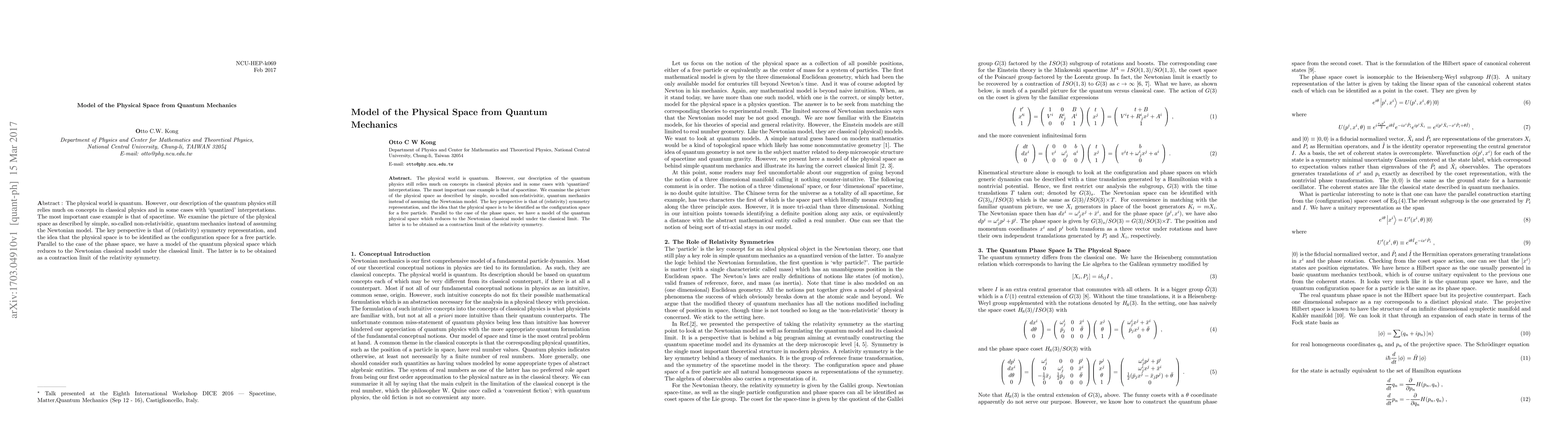 The physical world is quantum. However, our description of the quantum physics still relies much on concepts in classical physics and in some cases with `quantized' interpretations. The most important case example is that of spacetime. We examine the picture of the physical space as described by simple, so-called non-relativisitic, quantum mechanics instead of assuming the Newtonian model. The key perspective is that of (relativity) symmetry representation, and the idea that the physical space is to be identified as the configuration space for a free particle. Parallel to the case of the phase space, we have a model of the quantum physical space which reduces to the Newtonian classical model under the classical limit. The latter is to be obtained as a contraction limit of the relativity symmetry.
