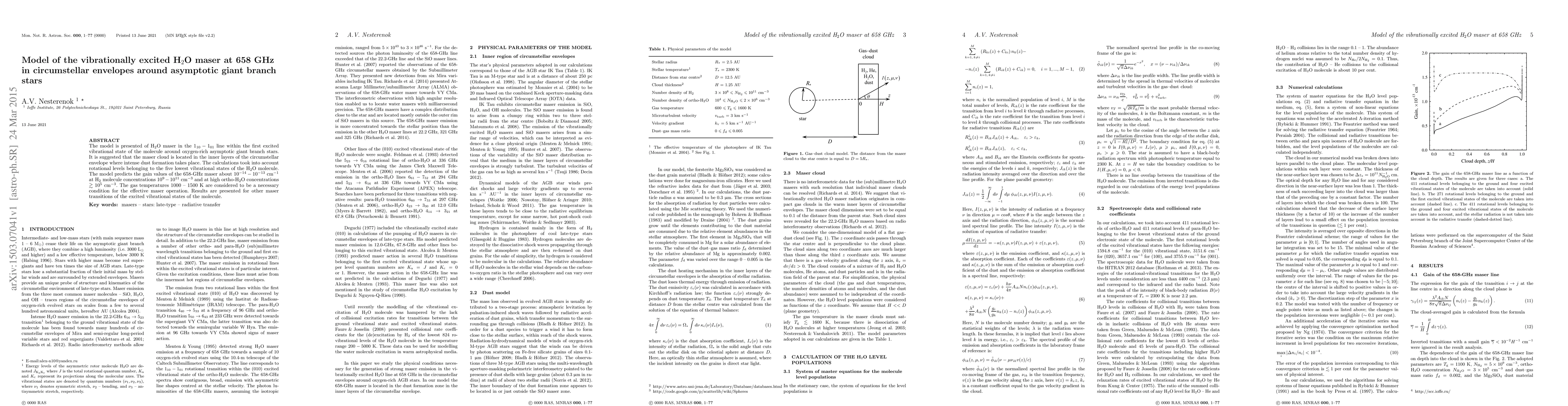 Researchers modelled the H$_2$O maser in circumstellar envelopes around asymptotic giant branch stars, finding that it requires specific conditions to operate, including high gas temperatures and ortho-H$_2$O concentrations.