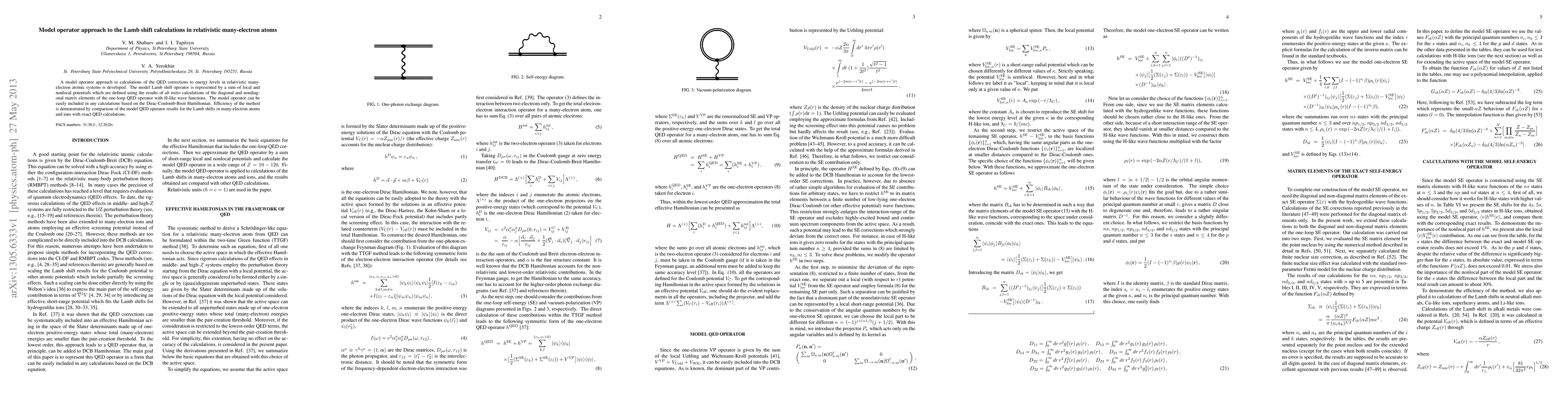 This paper develops a model operator approach for calculating QED corrections in relativistic many-electron atoms, representing the Lamb shift with local and nonlocal potentials derived from ab initio calculations. The method's efficiency is validated by comparing its results with exact QED calculations.