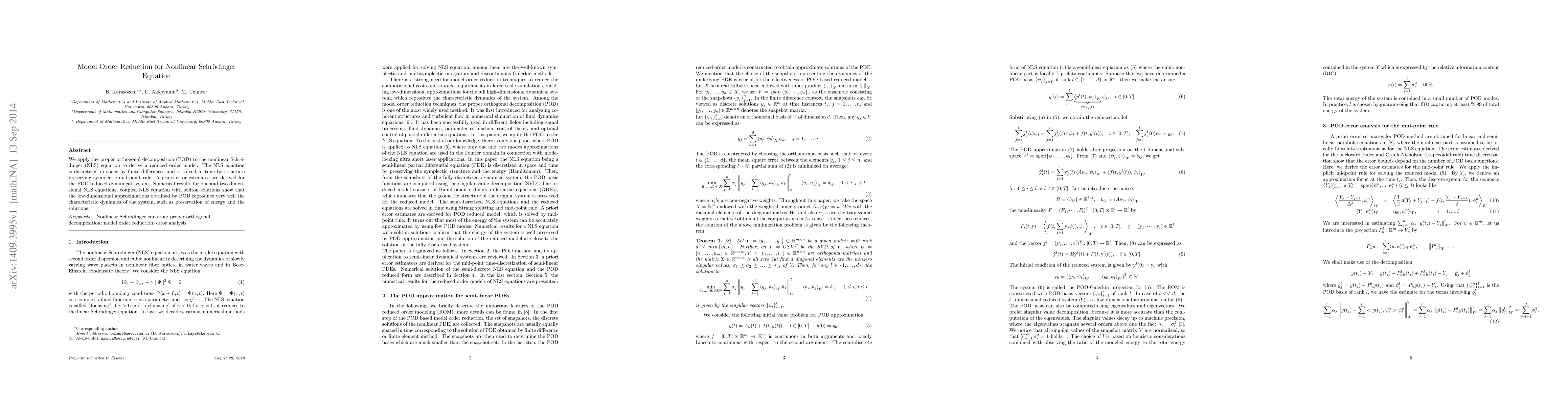 This paper applies proper orthogonal decomposition (POD) to reduce the order of the nonlinear Schrödinger equation, achieving accurate low-dimensional approximations of its dynamics. The POD method preserves energy and solution characteristics, as demonstrated through numerical simulations of 1D and 2D NLS equations and coupled NLS systems.