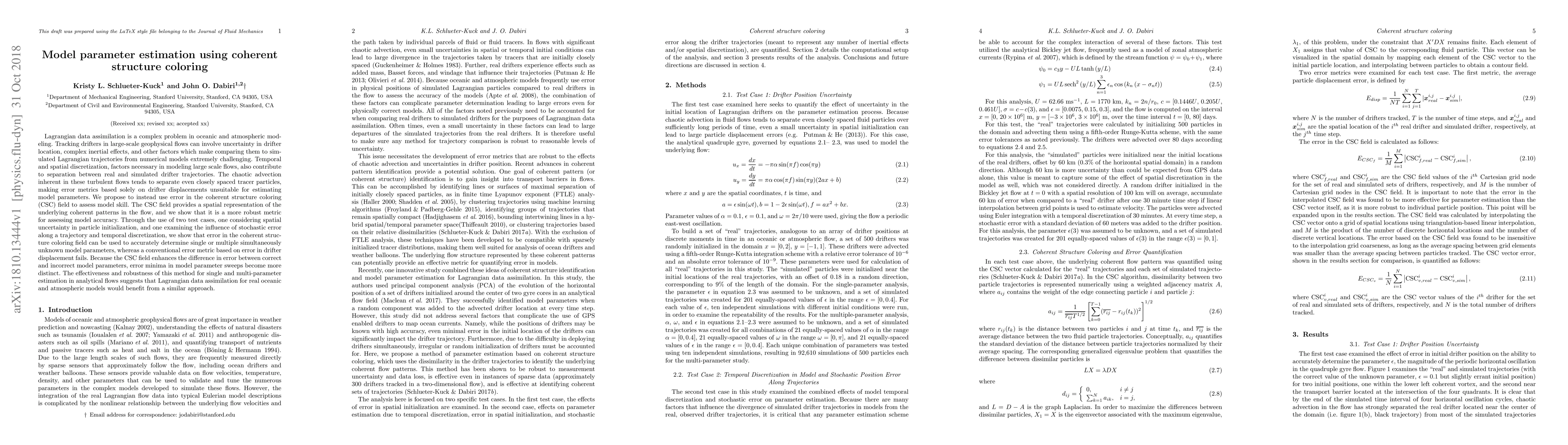 Researchers propose using error in 'coherent structure coloring' to estimate model parameters, which is more robust than traditional methods based on drifter displacements.