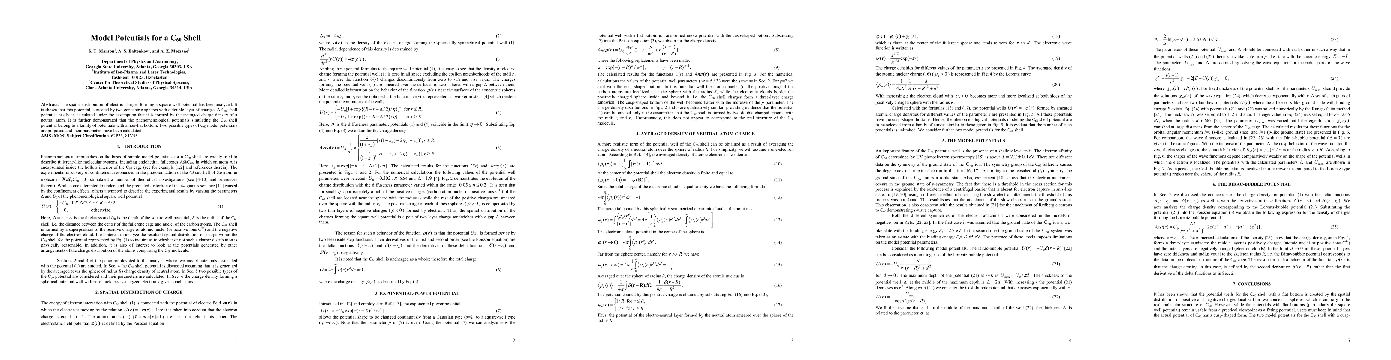The spatial distribution of electric charges forming a square well potential has been analyzed. It is shown that this potential is created by two concentric spheres with a double layer of charges. A C60 shell potential has been calculated under the assumption that it is formed by the averaged charge density of a neutral atom. It is further demonstrated that the phenomenological potentials simulating the C60 shell potential belong to a family of potentials with a non-flat bottom. Two possible types of C60 model potentials are proposed and their parameters have been calculated. AMS (MOS) Subject Classification. 62P35, 81V55