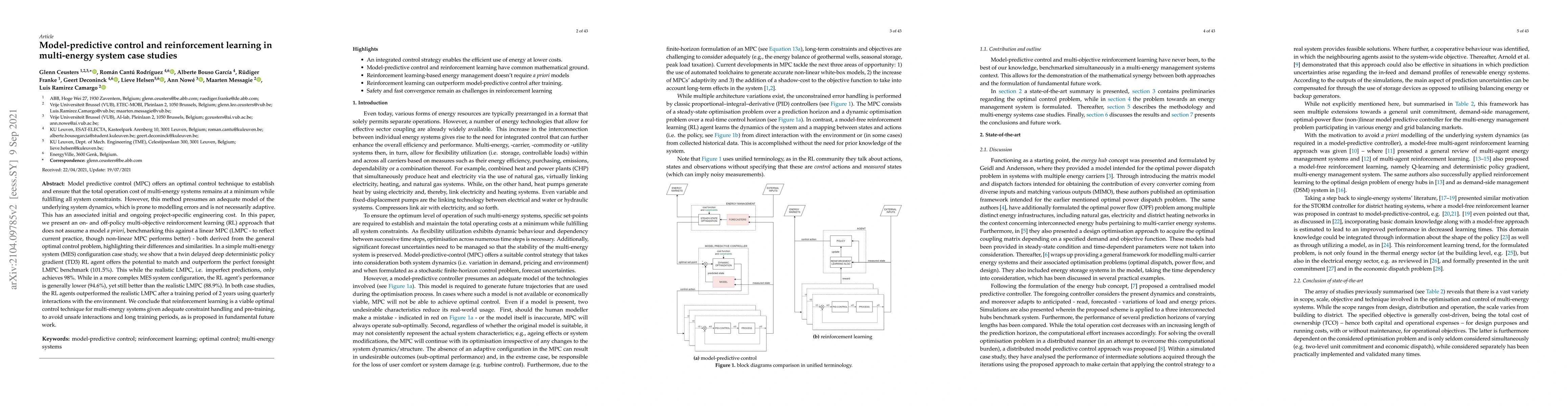 Reinforcement learning outperforms traditional model-predictive control in multi-energy systems, offering a viable alternative with improved adaptability and reduced initial costs.