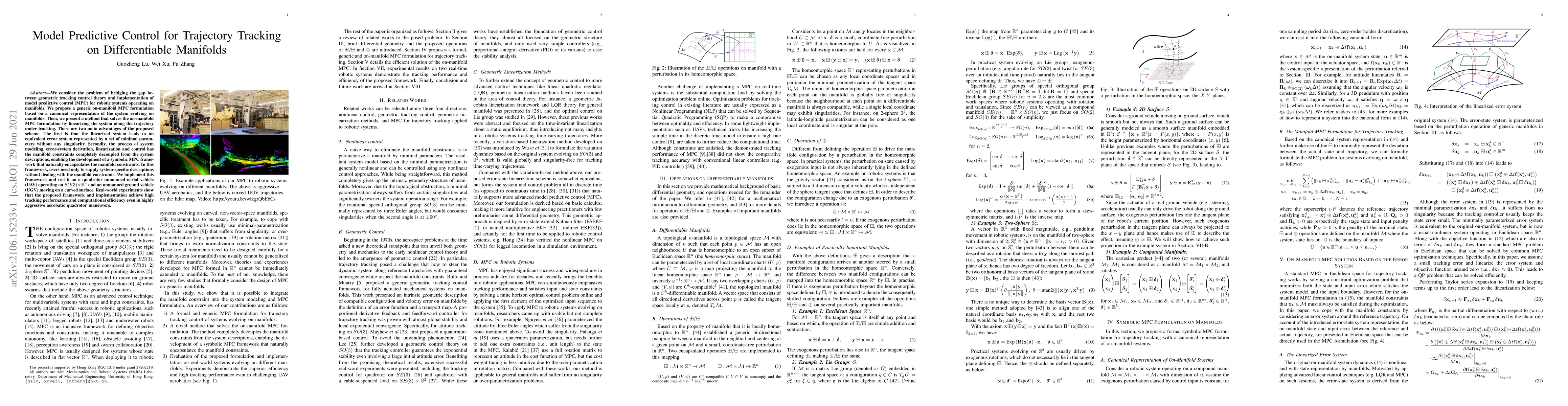 This paper proposes a novel on-manifold model predictive control (MPC) framework for robotic systems on differentiable manifolds, decoupling manifold constraints from system descriptions. The method achieves high tracking performance and computational efficiency, demonstrated through real-world tests on a quadrotor UAV and an unmanned ground vehicle.