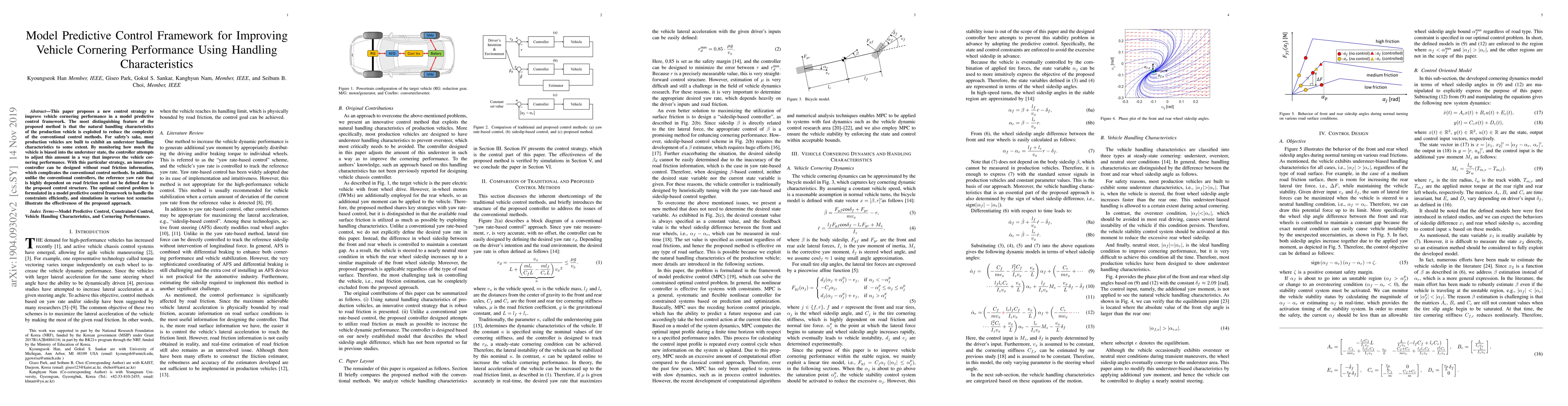 This paper proposes a new control strategy to improve vehicle cornering performance in a model predictive control framework. The most distinguishing feature of the proposed method is that the natural handling characteristics of the production vehicle is exploited to reduce the complexity of the conventional control methods. For safety s sake, most production vehicles are built to exhibit an understeer handling characteristics to some extent. By monitoring how much the vehicle is biased into the understeer state, the controller attempts to adjust this amount in a way that improves the vehicle cornering performance. With this particular strategy, an innovative controller can be designed without road friction information, which complicates the conventional control methods. In addition, unlike the conventional controllers, the reference yaw rate that is highly dependent on road friction need not be defined due to the proposed control structure. The optimal control problem is formulated in a model predictive control framework to handle the constraints efficiently, and simulations in various test scenarios illustrate the effectiveness of the proposed approach.
