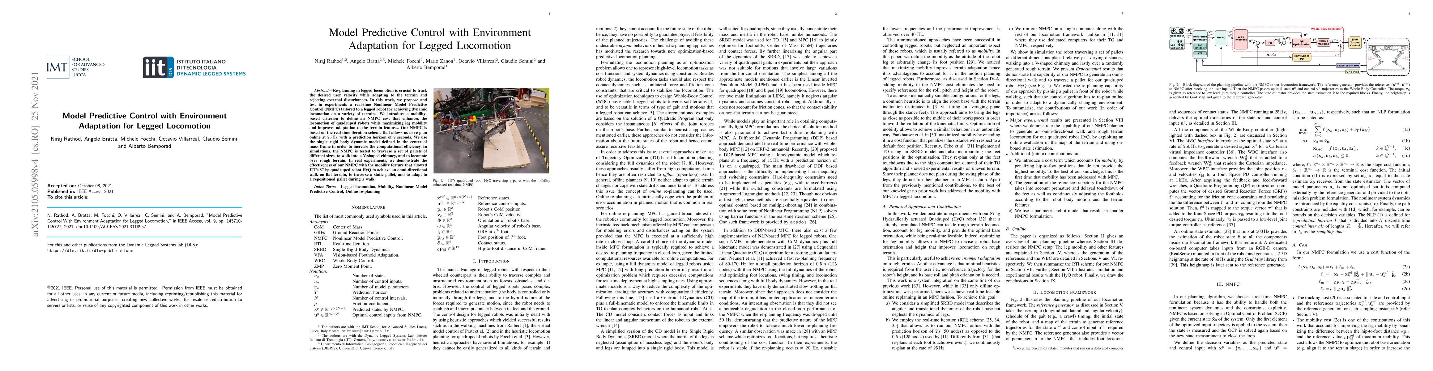 This paper proposes a real-time Nonlinear Model Predictive Control (NMPC) for quadruped robots to dynamically adapt to terrain and disturbances. The NMPC enhances leg mobility and terrain adaptation, achieving omni-directional walking and traversal of obstacles in both simulations and real-world experiments with IIT's HyQ robot.