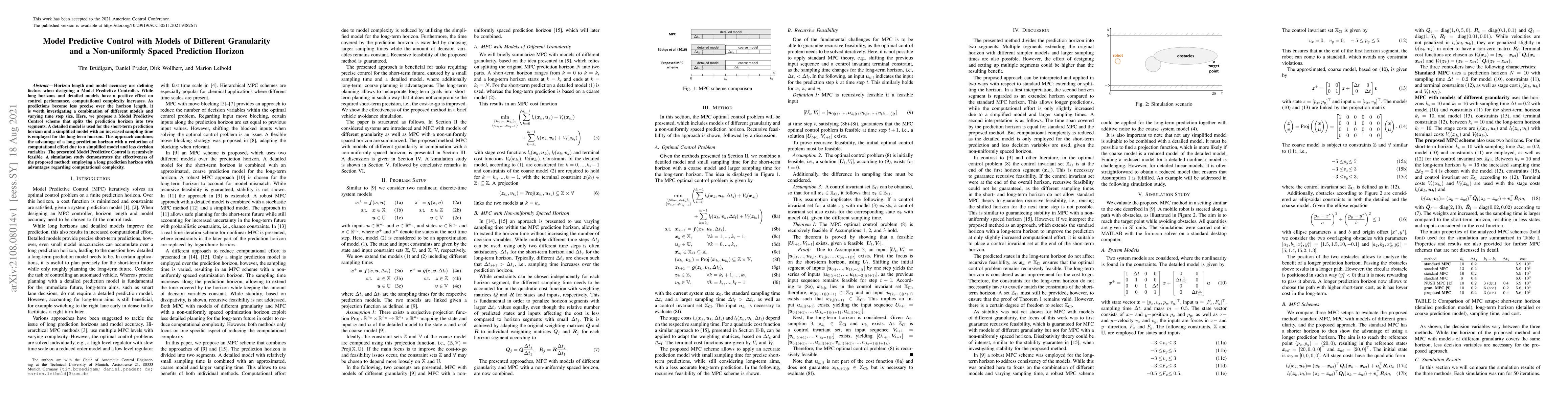 This paper proposes a Model Predictive Control scheme that uses different models for short-term and long-term predictions, balancing control performance and computational complexity. The method employs a detailed model for immediate predictions and a simplified model for longer-term predictions, demonstrating improved efficiency in simulations.