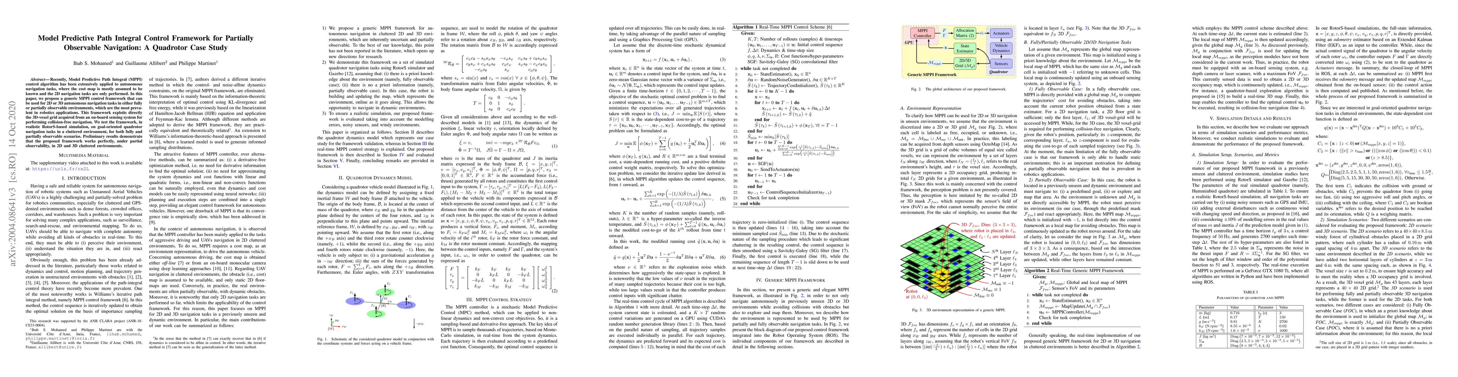 This paper proposes a Model Predictive Path Integral (MPPI) control framework for autonomous navigation in both fully and partially observable environments, applicable to 2D or 3D tasks. The framework utilizes 3D-voxel grids from onboard sensors for collision-free navigation, and preliminary results from RotorS simulations show successful navigation in cluttered environments.