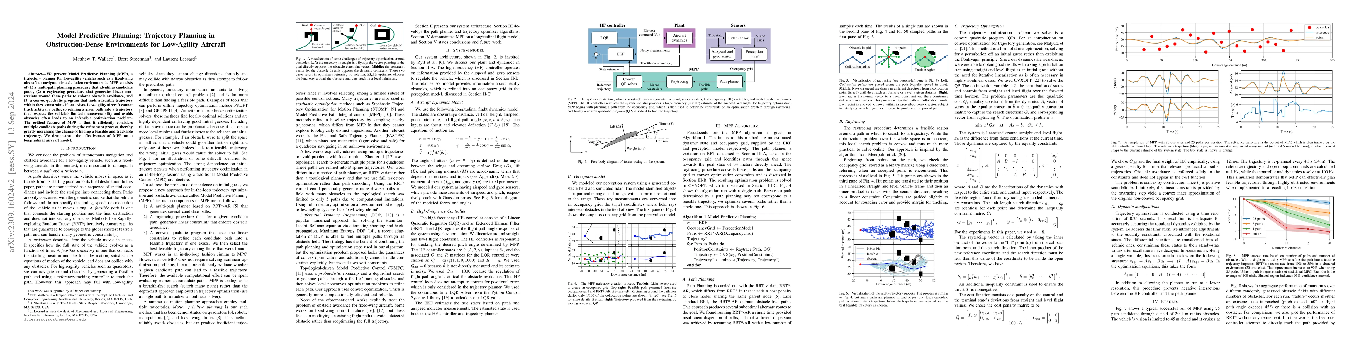 This paper introduces Model Predictive Planning (MPP) for real-time multi-trajectory optimization in obstacle-rich environments, featuring path refinement, multi-path planning, and timescale separation. Demonstrated through 2D aircraft simulations, it shows effective obstacle avoidance.