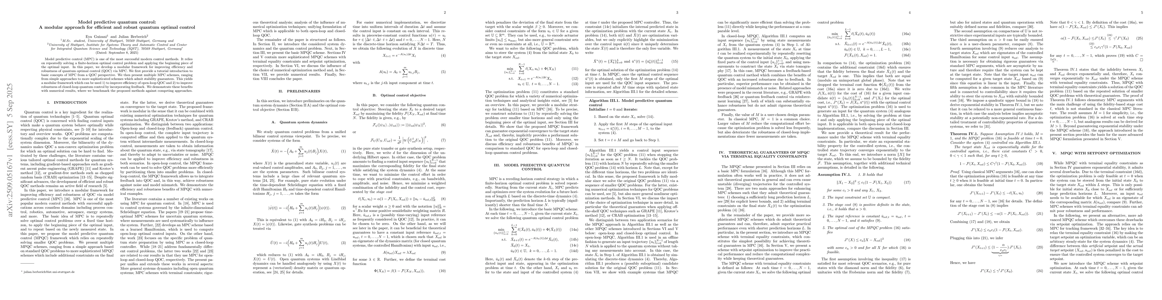 Model predictive control (MPC) is one of the most successful modern control methods. It relies on repeatedly solving a finite-horizon optimal control problem and applying the beginning piece of the optimal input. In this paper, we develop a modular framework for improving efficiency and robustness of quantum optimal control (QOC) via MPC. We first provide a tutorial introduction to basic concepts of MPC from a QOC perspective. We then present multiple MPC schemes, ranging from simple approaches to more sophisticated schemes which admit stability guarantees. This yields a modular framework which can be used 1) to improve efficiency of open-loop QOC and 2) to improve robustness of closed-loop quantum control by incorporating feedback. We demonstrate these benefits with numerical results, where we benchmark the proposed methods against competing approaches.