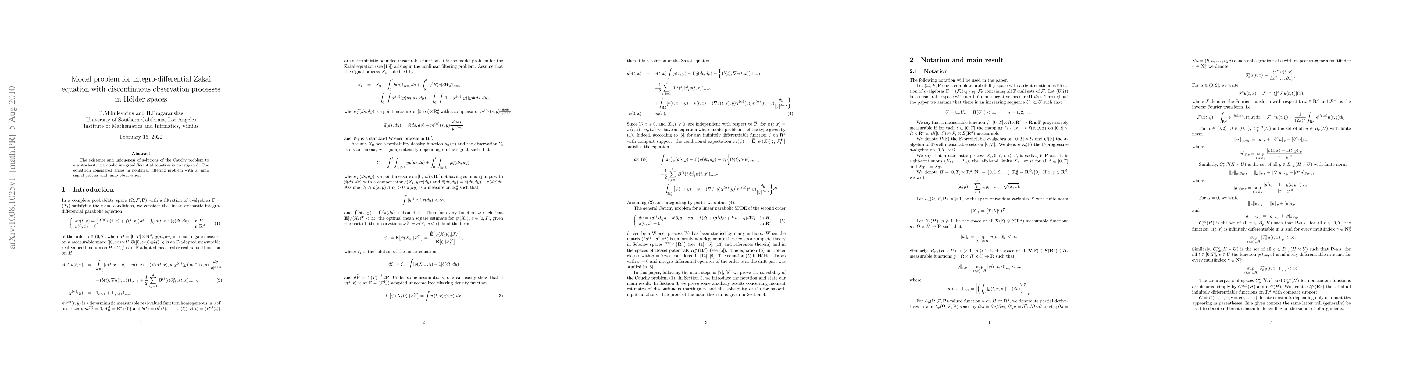 This paper investigates the existence and uniqueness of solutions to a stochastic parabolic integro-differential equation arising in nonlinear filtering with discontinuous observation processes. The analysis is conducted within the framework of H\"older spaces.