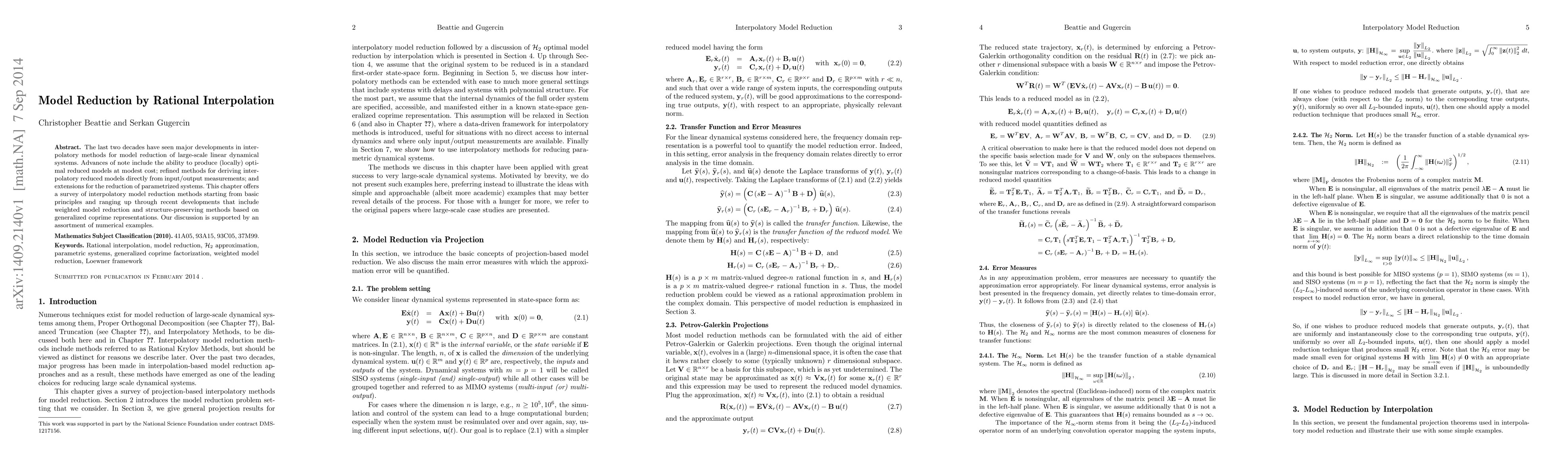 This paper surveys recent developments in model reduction methods for large-scale linear dynamical systems, including interpolatory methods that produce optimal reduced models at low cost.