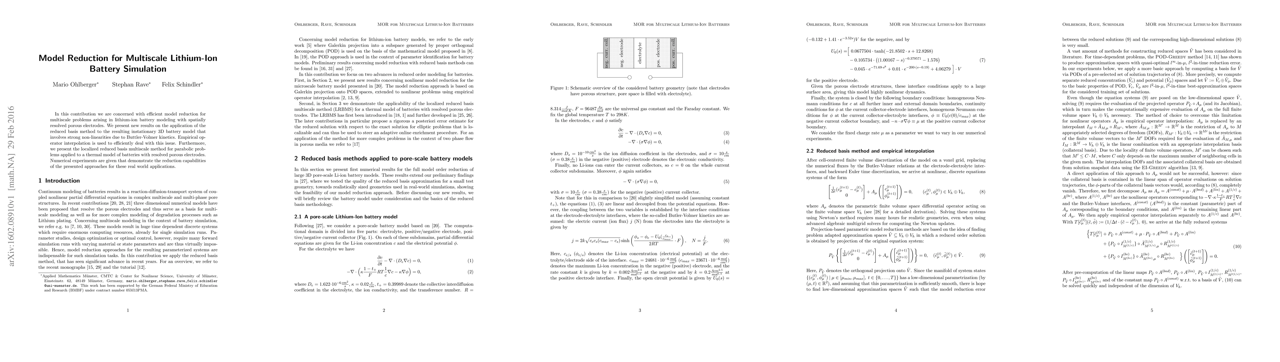 This paper proposes efficient model reduction techniques for multiscale lithium-ion battery simulations, specifically applying reduced basis methods to handle the instationary 3D model with strong non-linearities. Numerical experiments validate the effectiveness of these methods for real-world battery applications.